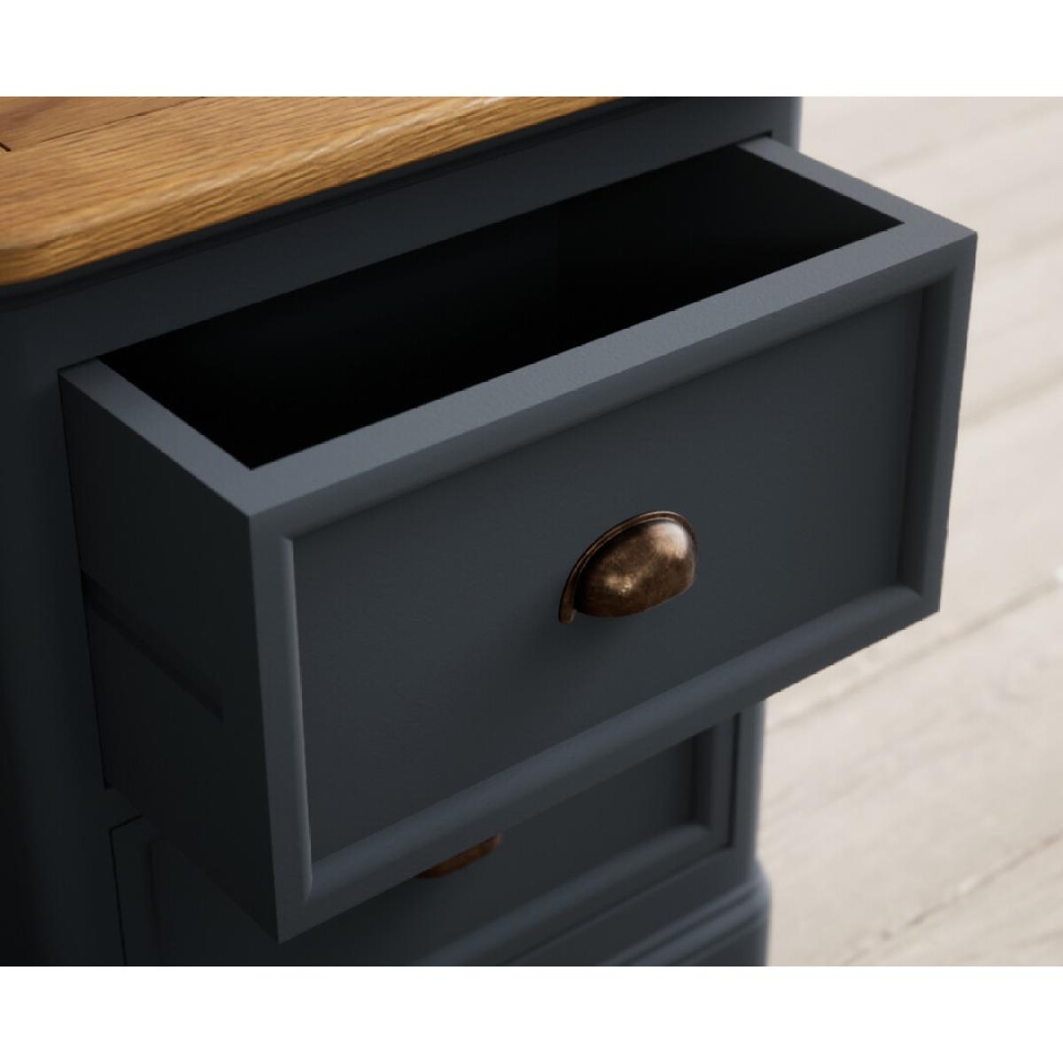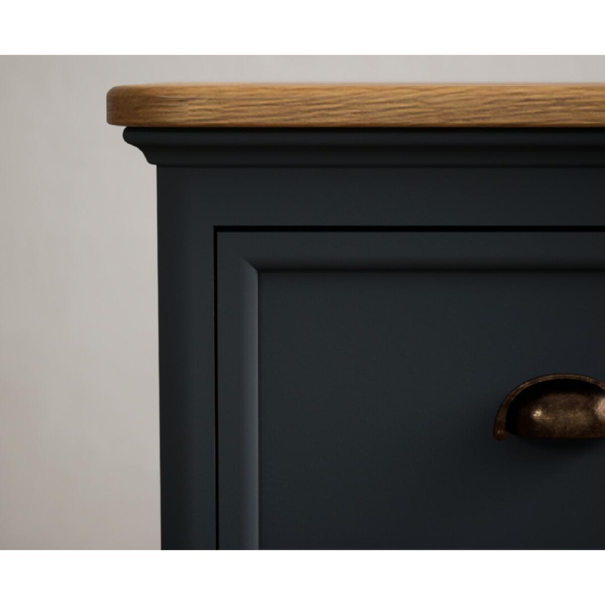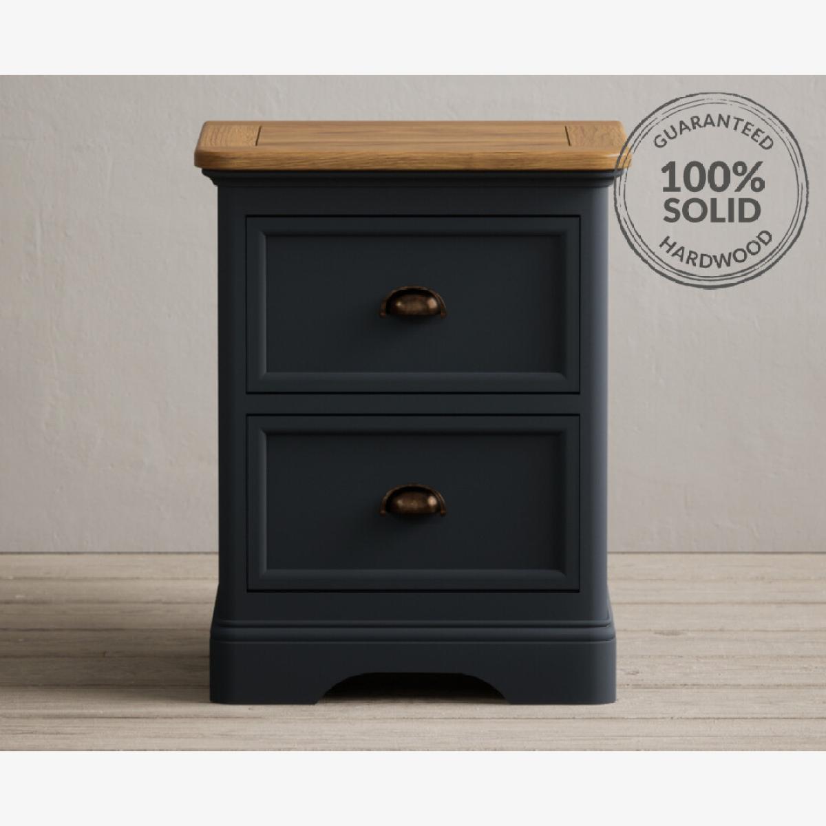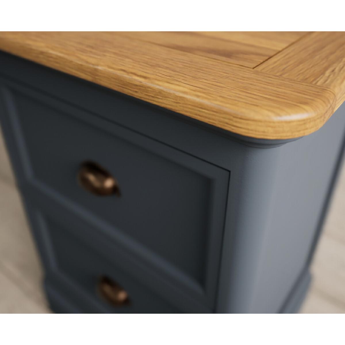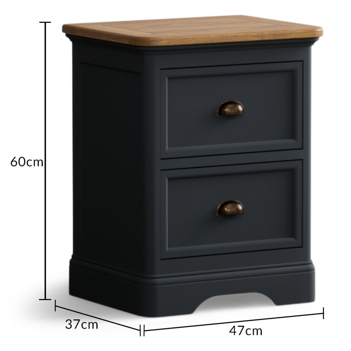 The Bridstow Blue 2 Drawer Bedside Chest is crafted from solid hardwood with a blue painted finish, with a solid oak top and two Dovetail drawers.