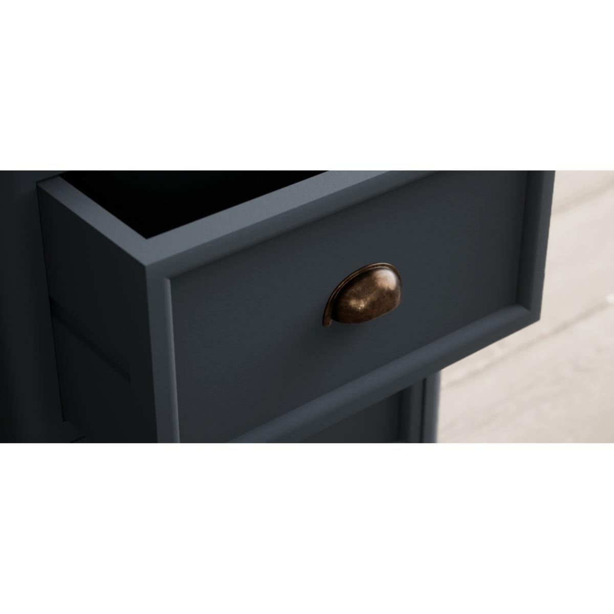 I’m a big fan of this oak-topped, blue painted bedside chest for its solid hardwood build and clean lines - it feels both durable and unfussy. The muted blue works especially well in Scandi-inspired, coastal or modern‐cottage bedrooms, adding a subtle pop of colour without overwhelming the scheme. For styling, keep the top clutter-free: a small brass lamp and a low vase of greenery will bring warmth, while a neat stack of books adds personality. Tuck a woven basket underneath or use the drawers to hide chargers and bedtime essentials, so your surface stays calm and organised.