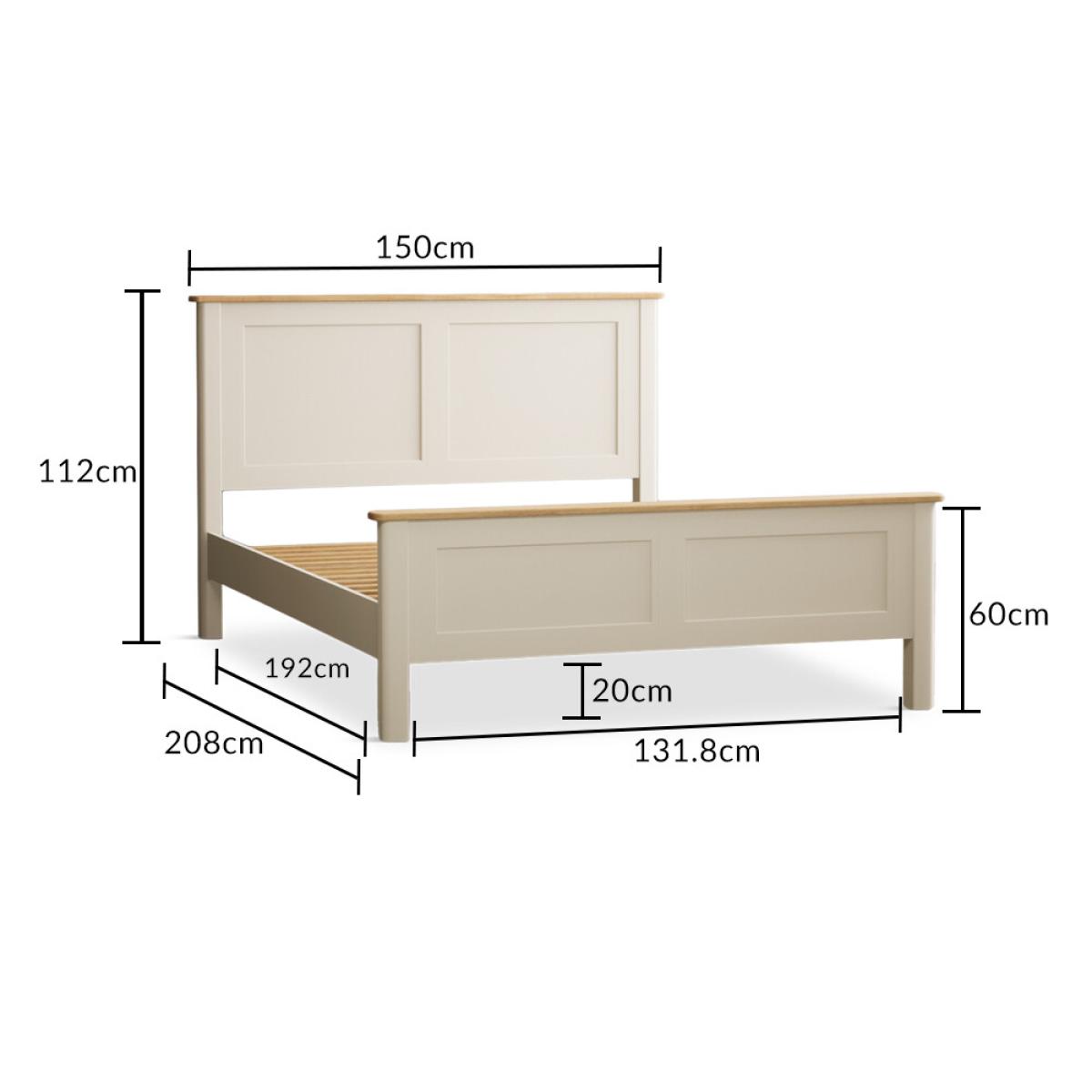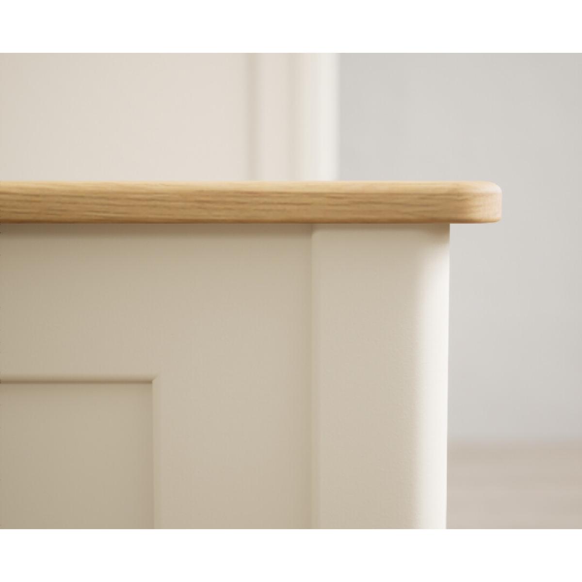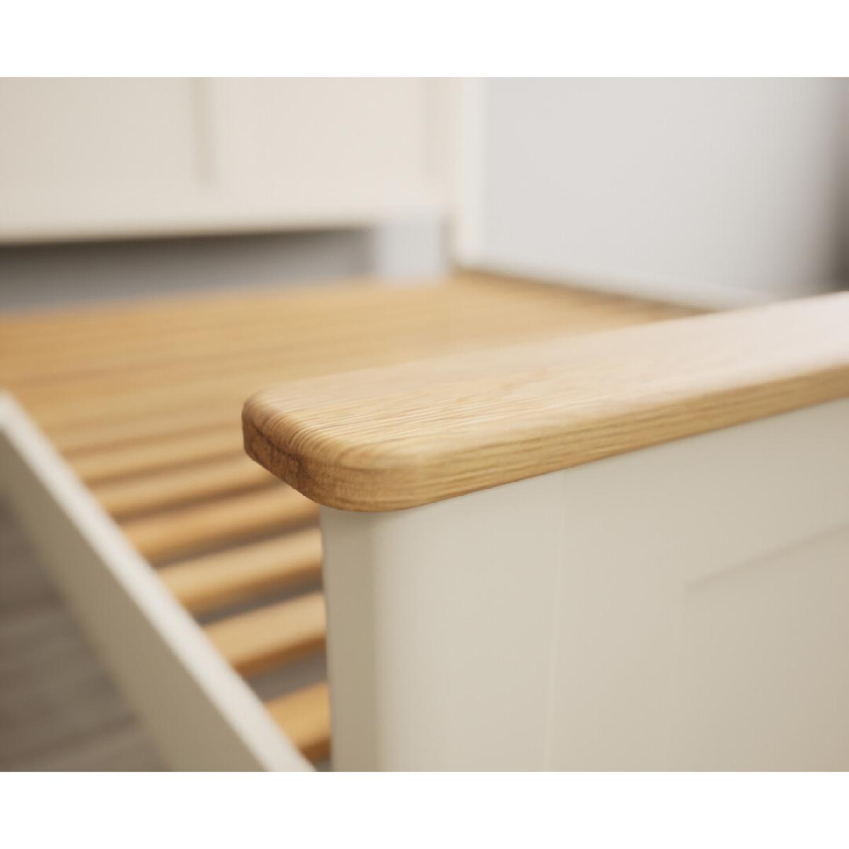 The Bridstow Cream Double Bed is crafted from solid hardwood with a cream painted finish, with solid oak topping the headboard and footboard and complete with solid wood slats.