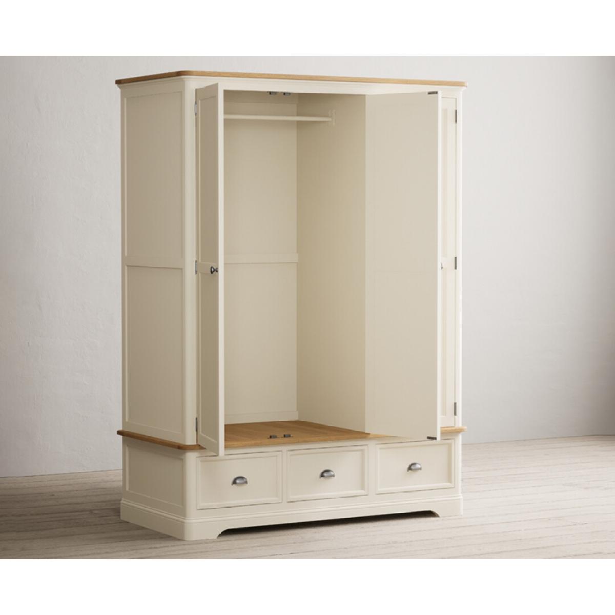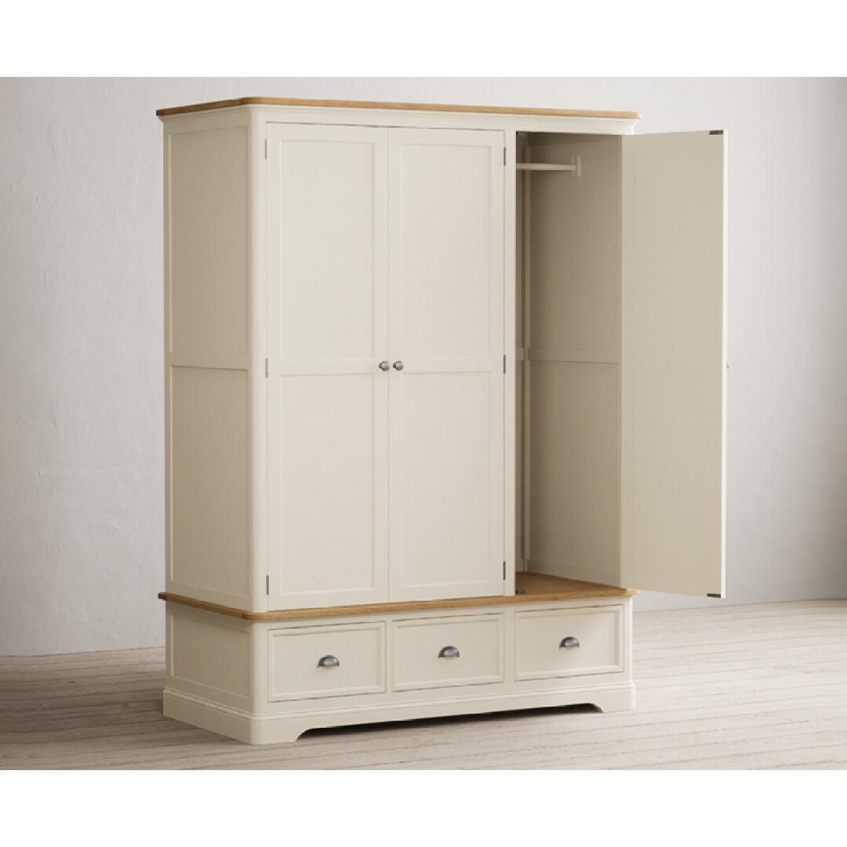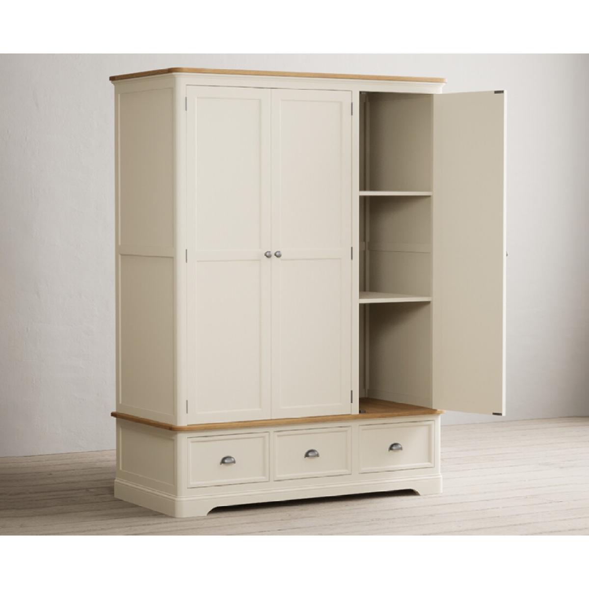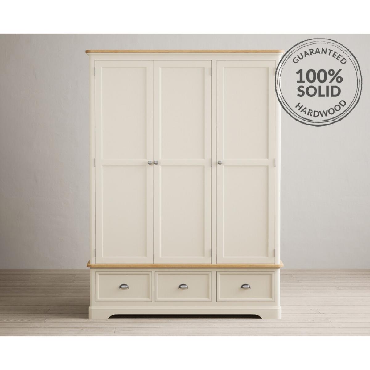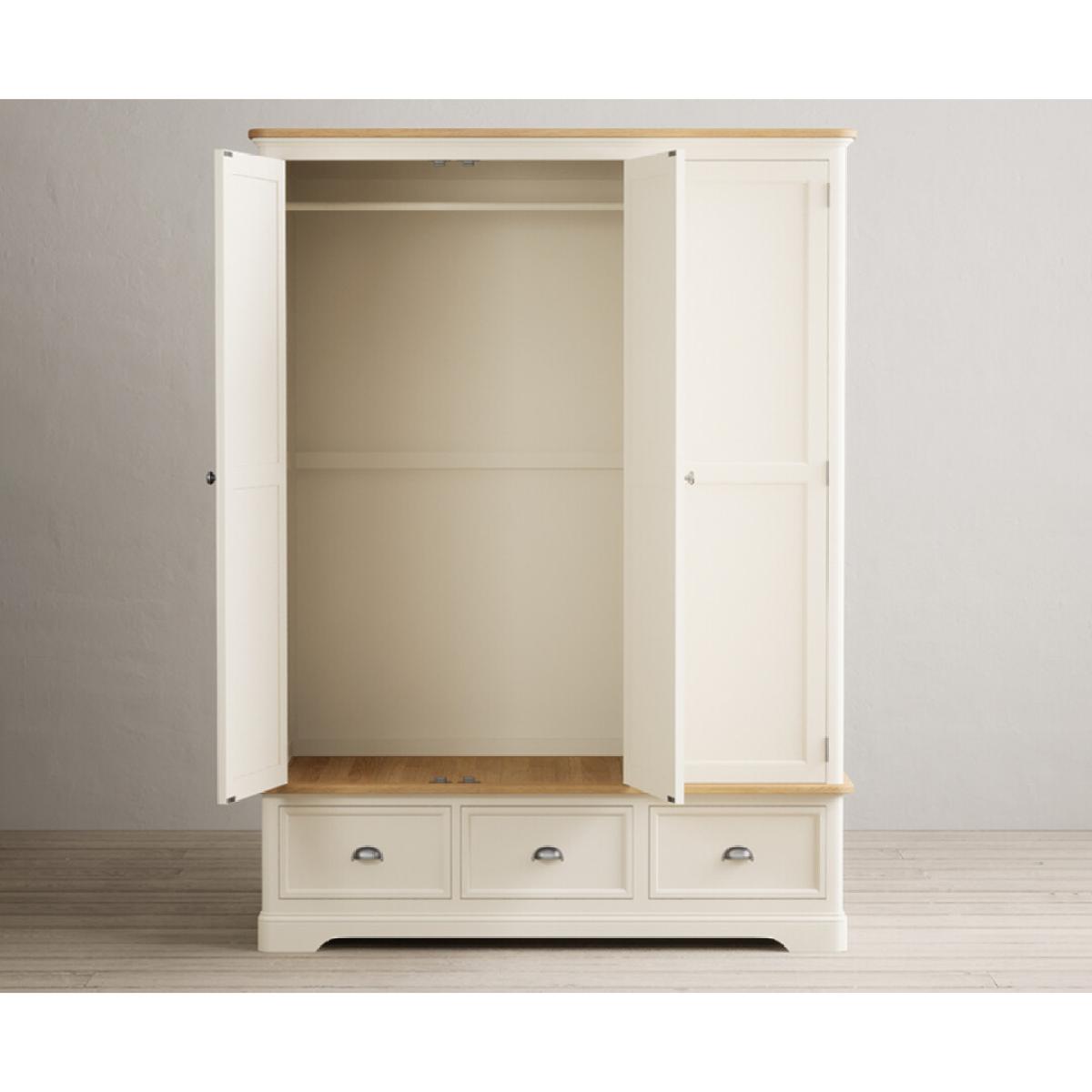 The Bridstow Oak and Cream Painted Triple Wardrobe is made from cream painted solid hardwood with a solid oak top, with hanging space, shelves and Dovetail drawers.