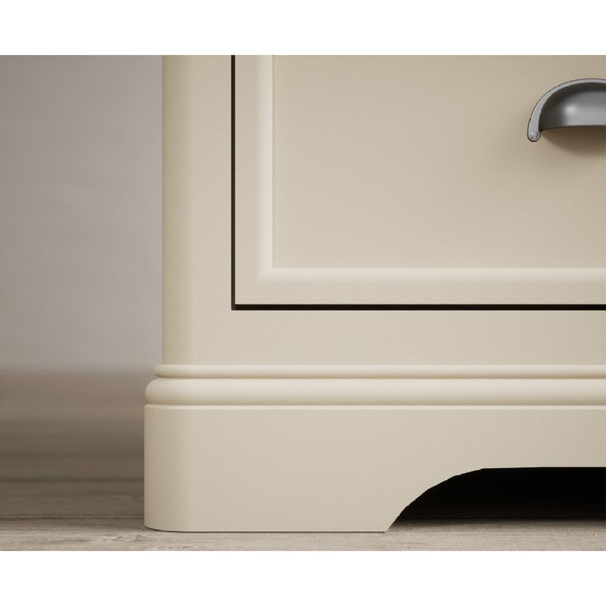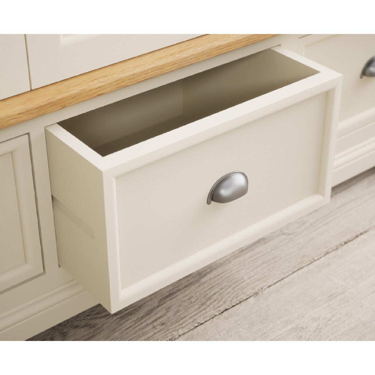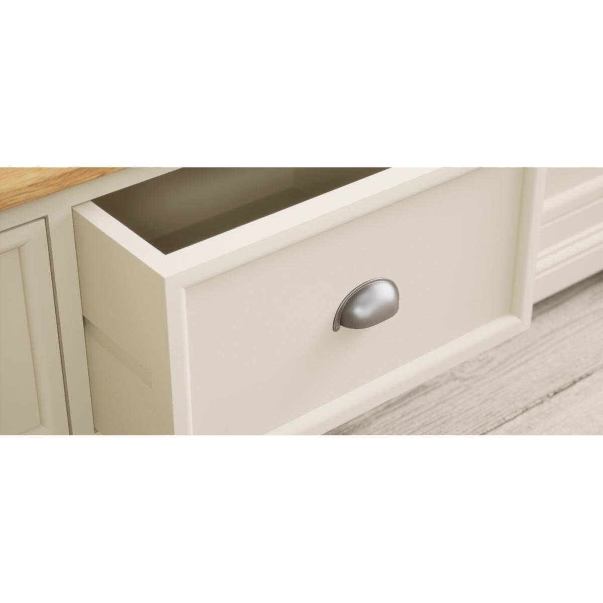 I’m a fan of this painted oak-top triple wardrobe because its clean lines and soft cream finish slot easily into both modern farmhouse and classic country schemes. The oak cornice and base add warmth and tie in beautifully with natural wood flooring or woven rugs, while the three-door design and deep lower drawers keep clothing neatly organised. To style it, flank the wardrobe with matching bedside tables or a low bench in complementary tones, then add simple metal or leather-strap hooks on the sidewall for scarves and hats. Keep accessories minimal - a linen runner or a small potted plant on top - to let the wardrobe’s craftsmanship take centre stage.