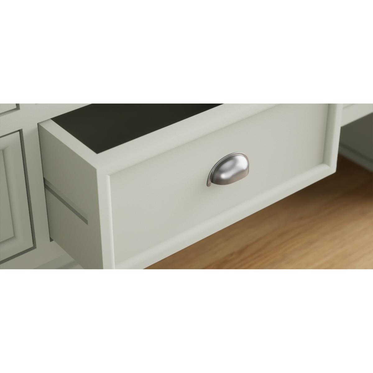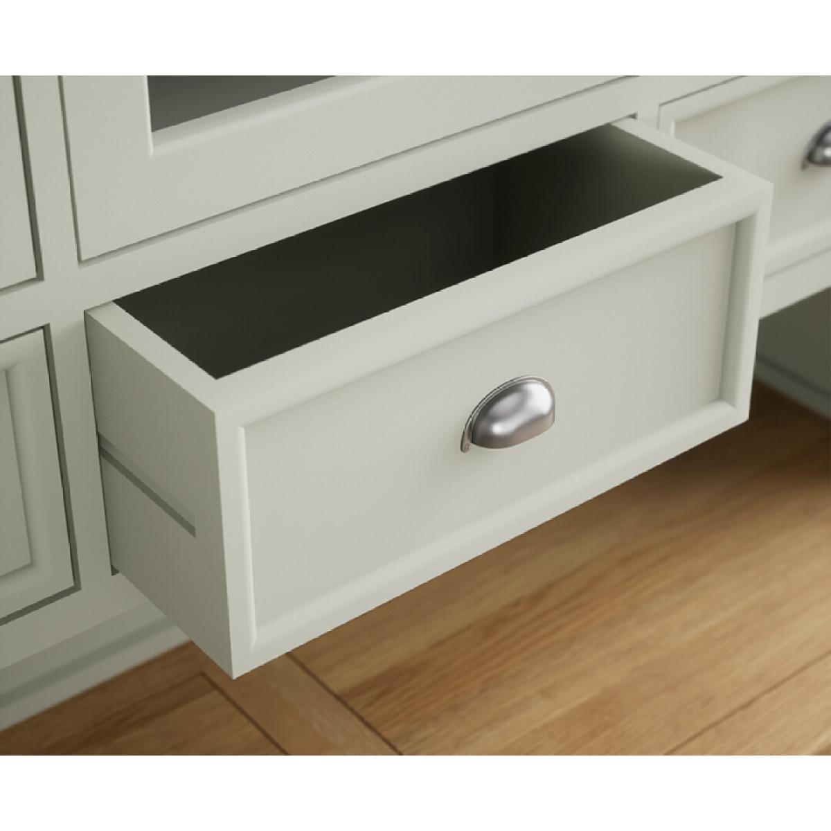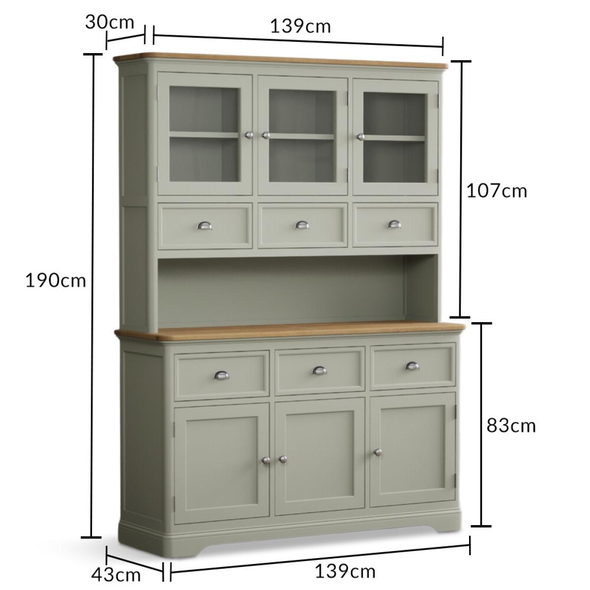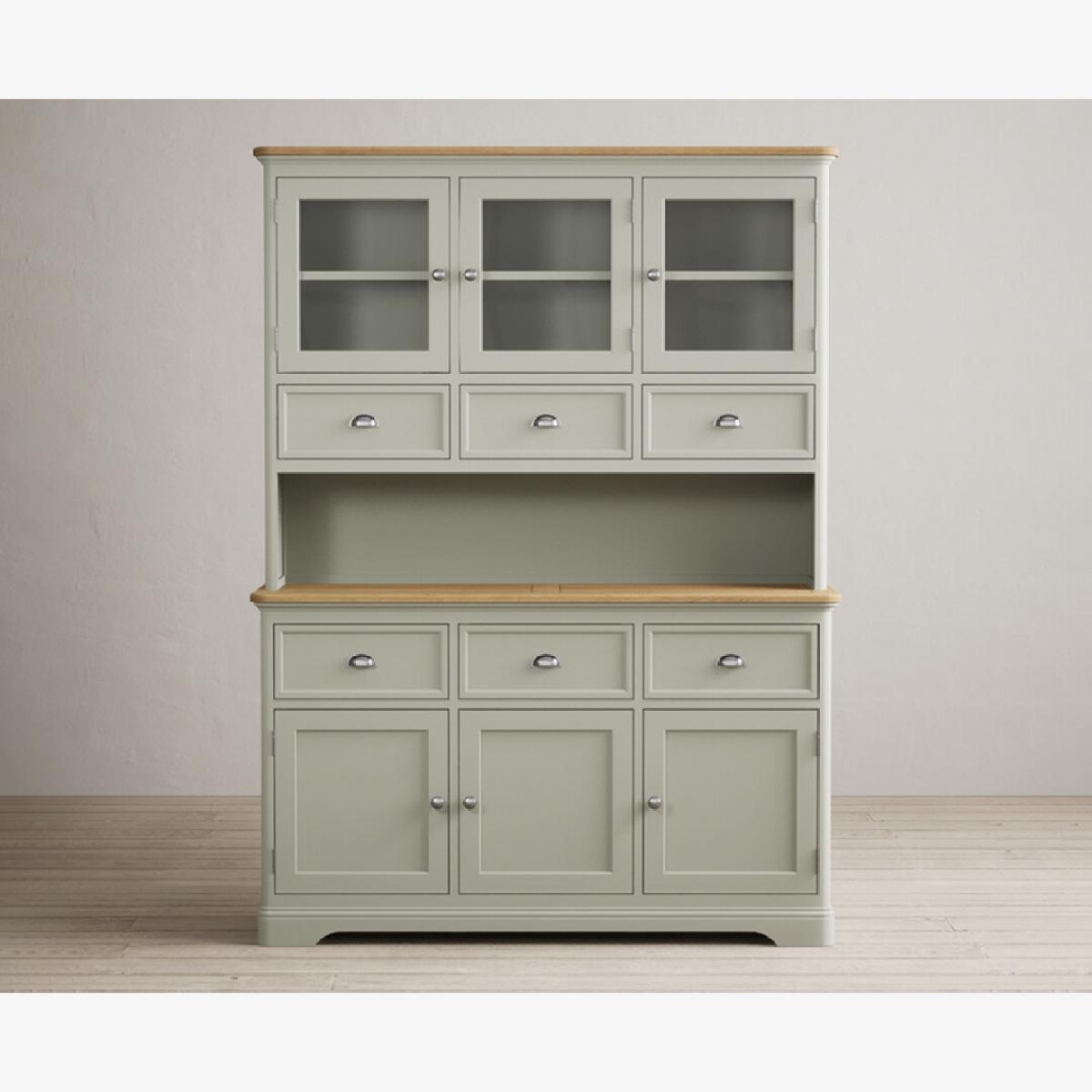 The Bridstow Soft Green Large Dresser is crafted from solid hardwood with a soft green painted finish and topped with solid oak, complete with dovetail drawers.