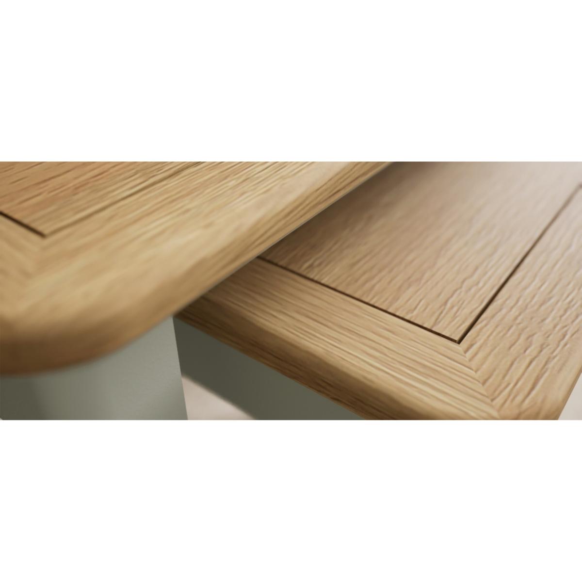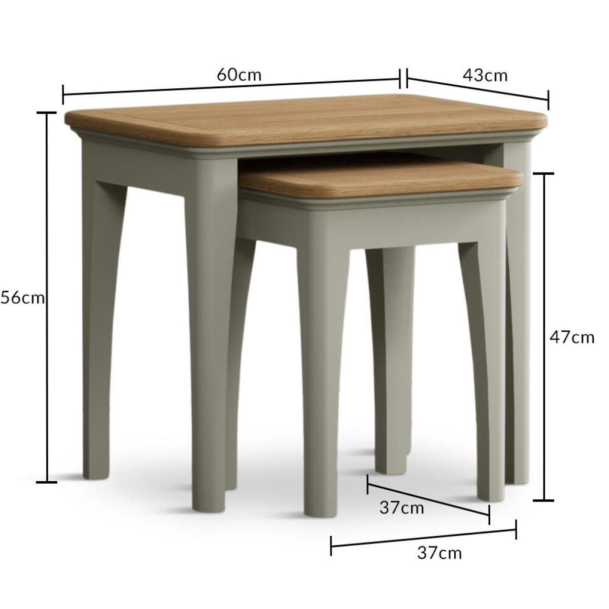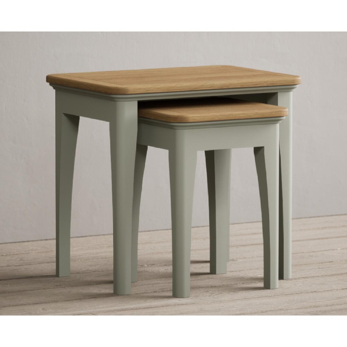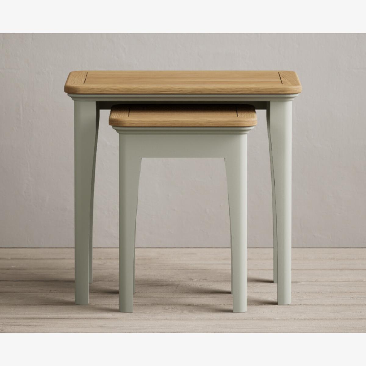 The Bridstow Soft Green Nest of Tables is a set of two versatile tables with solid hardwood legs with a soft green painted finish, topped with solid oak.
