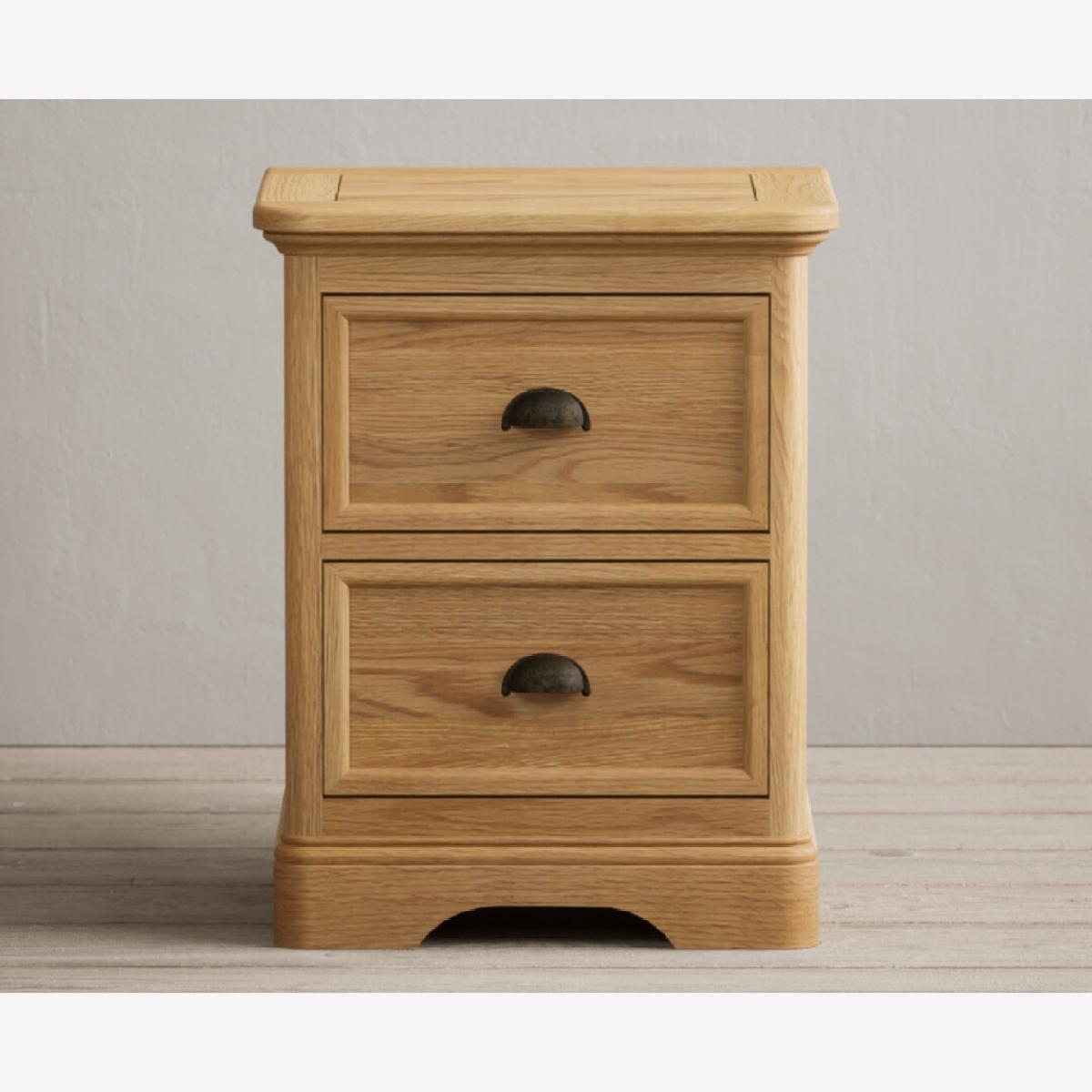 The Bridstow Natural Oak 2 Drawer Bedside Chest is crafted from 100% solid oak and features two Dovetail drawers with metal cup handles.