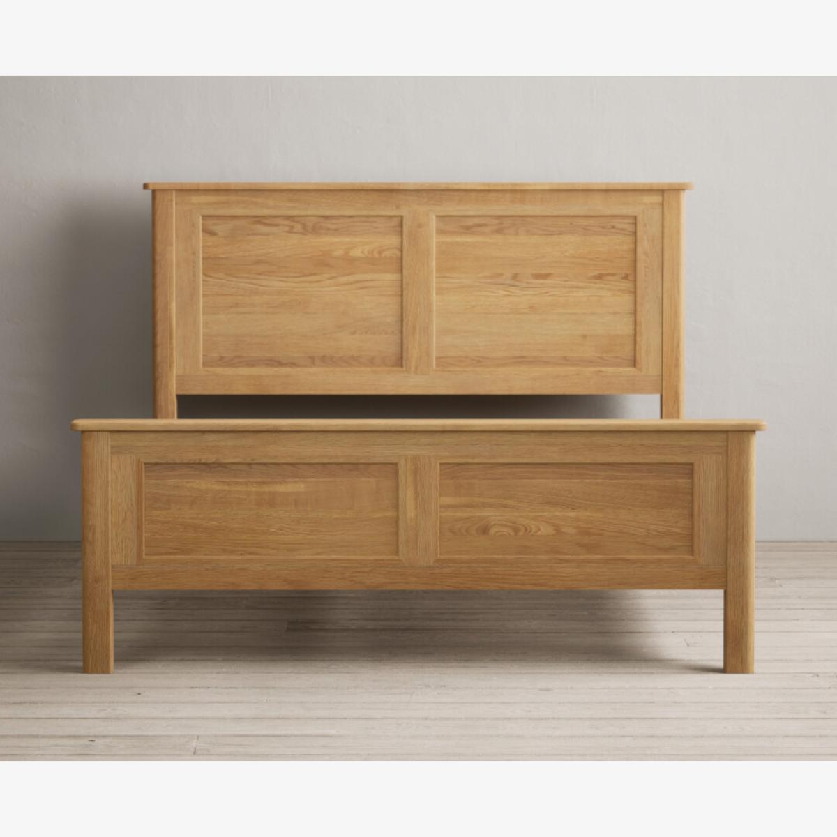 The Bridstow Natural Oak Double Bed is crafted from solid oak with a waxed finish and features a chic panelled design.
