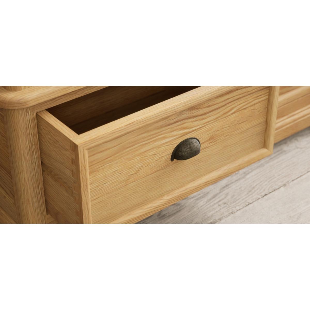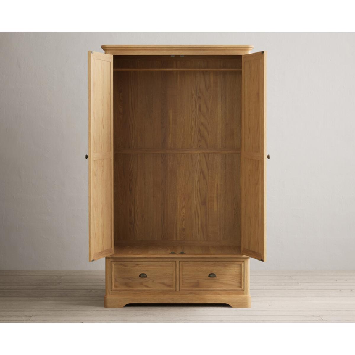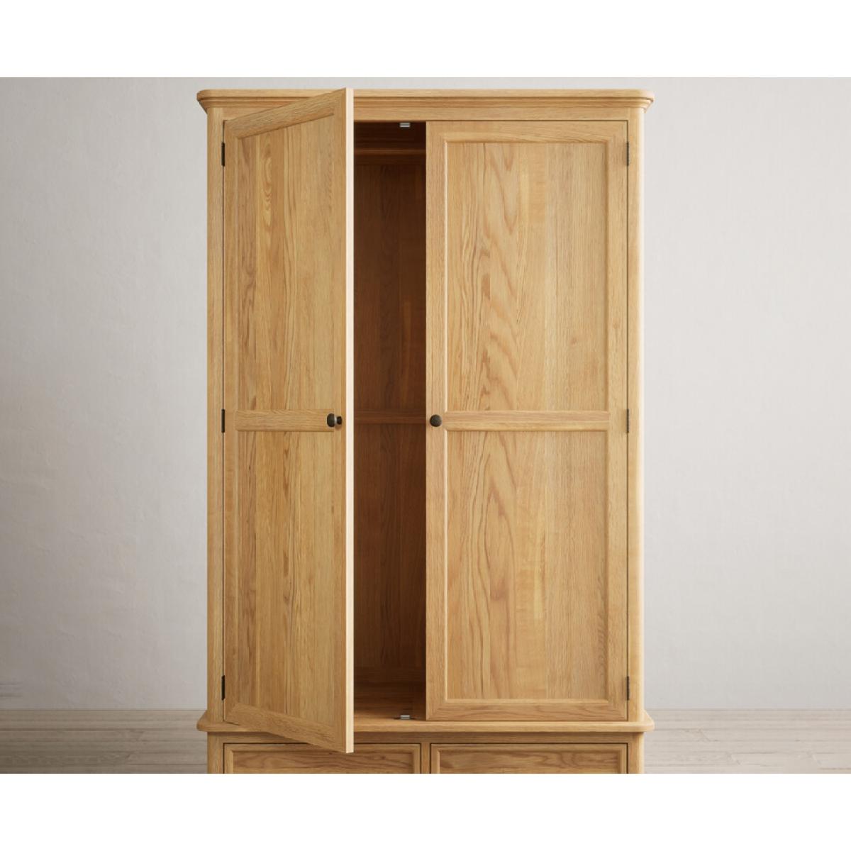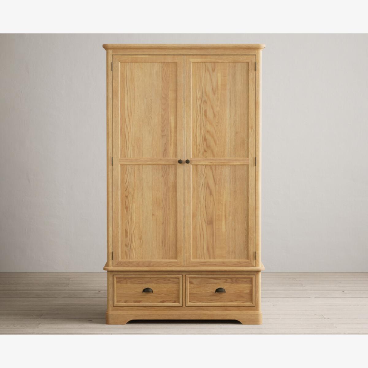 The Bridstow Natural Oak Double Wardrobe is crafted from 100% solid oak with a waxed finish and offers plenty of hanging space, with two Dovetail drawers.