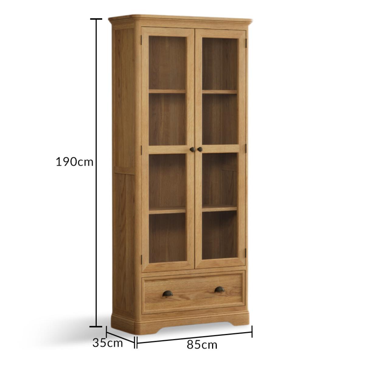 The Bridstow Natural Oak Glazed Display Cabinet has been robustly crafted from 100% solid oak and is complete with Dovetail drawers.