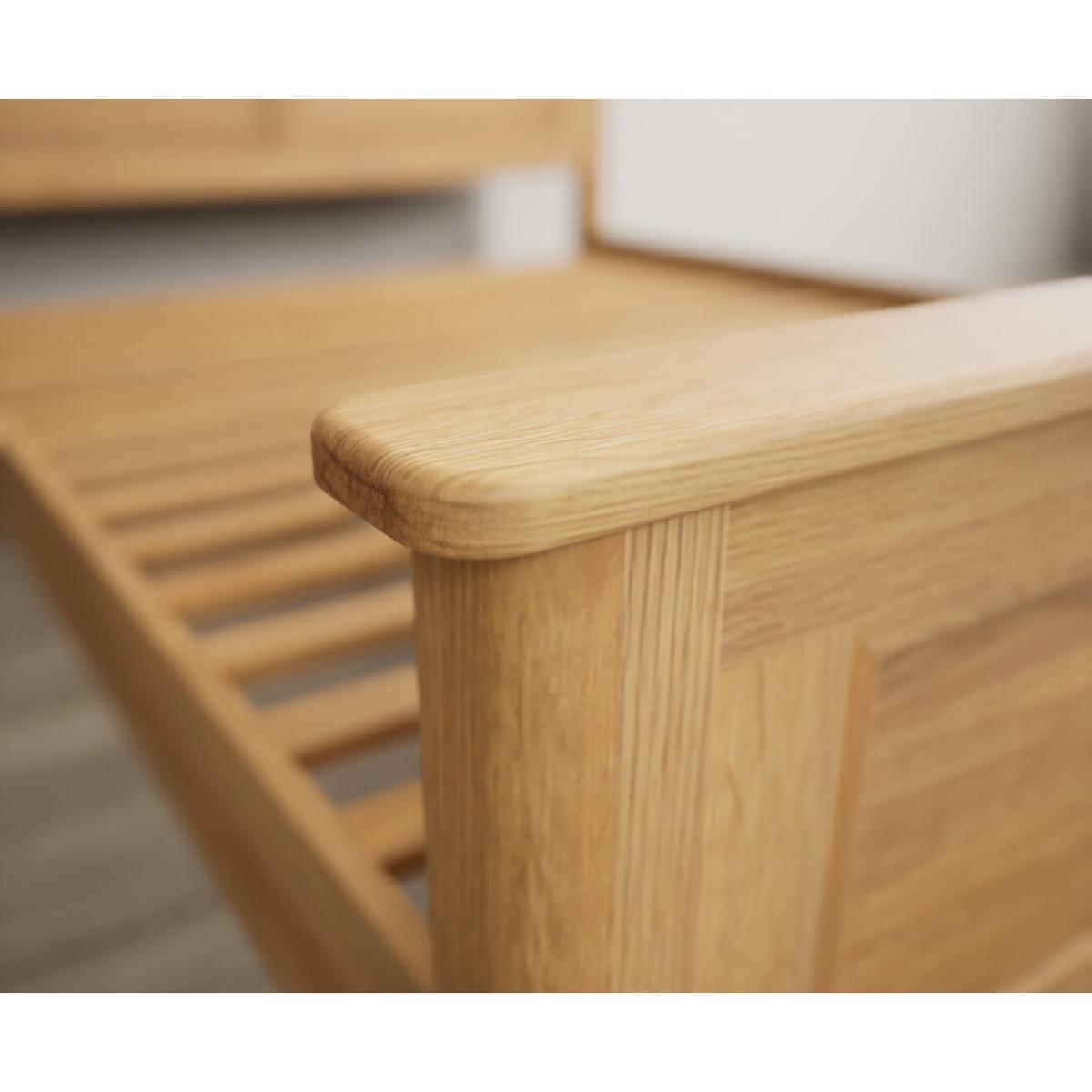The Bridstow Natural Oak Kingsize Bed is crafted from 100% solid oak with a waxed finish and is complete with sturdy, solid slats.