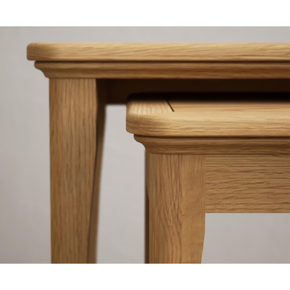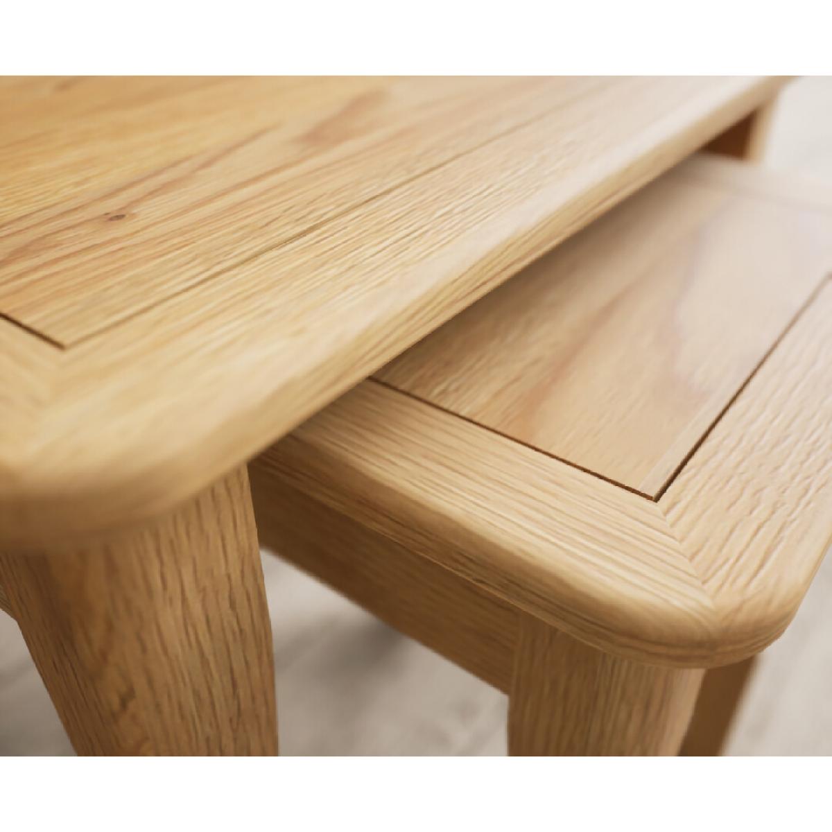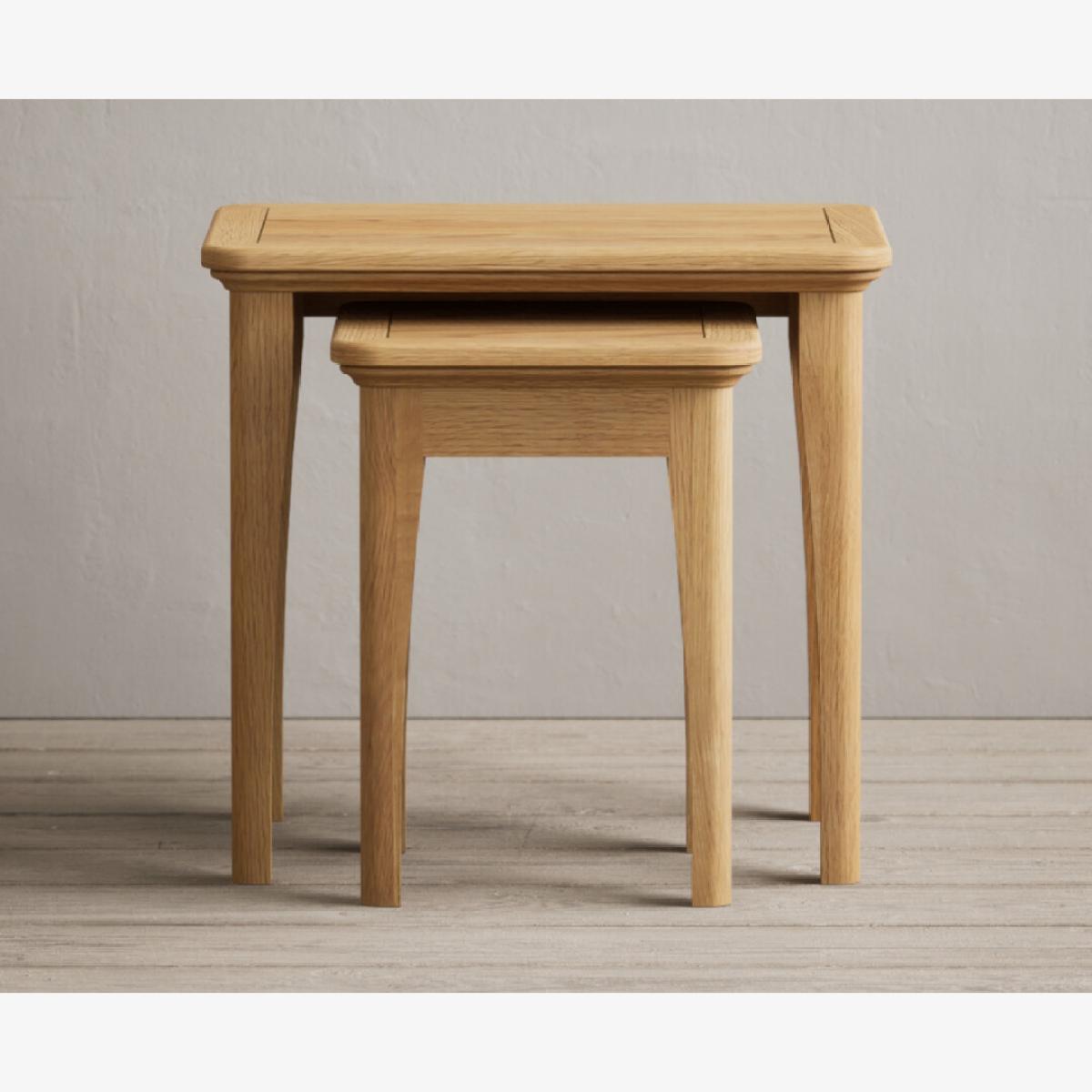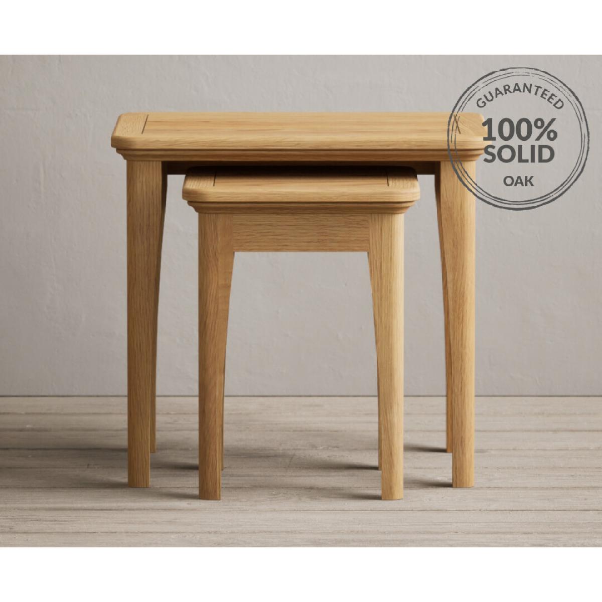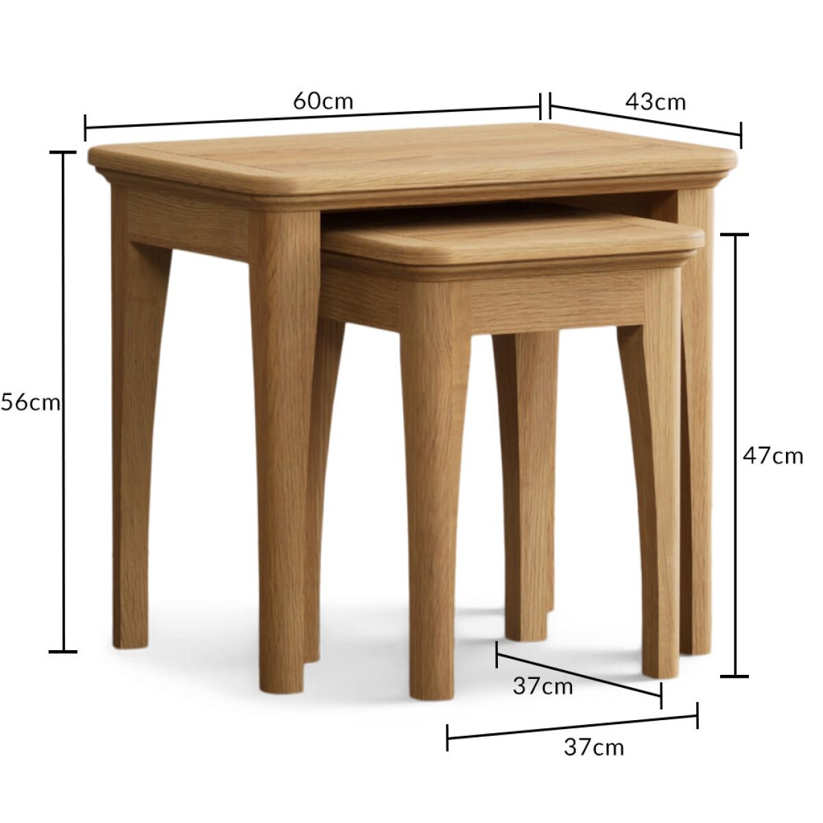 The Bridstow Natural Oak Nest of Tables is a set of two versatile tables crafted from 100% solid oak that nestle together when not in use.