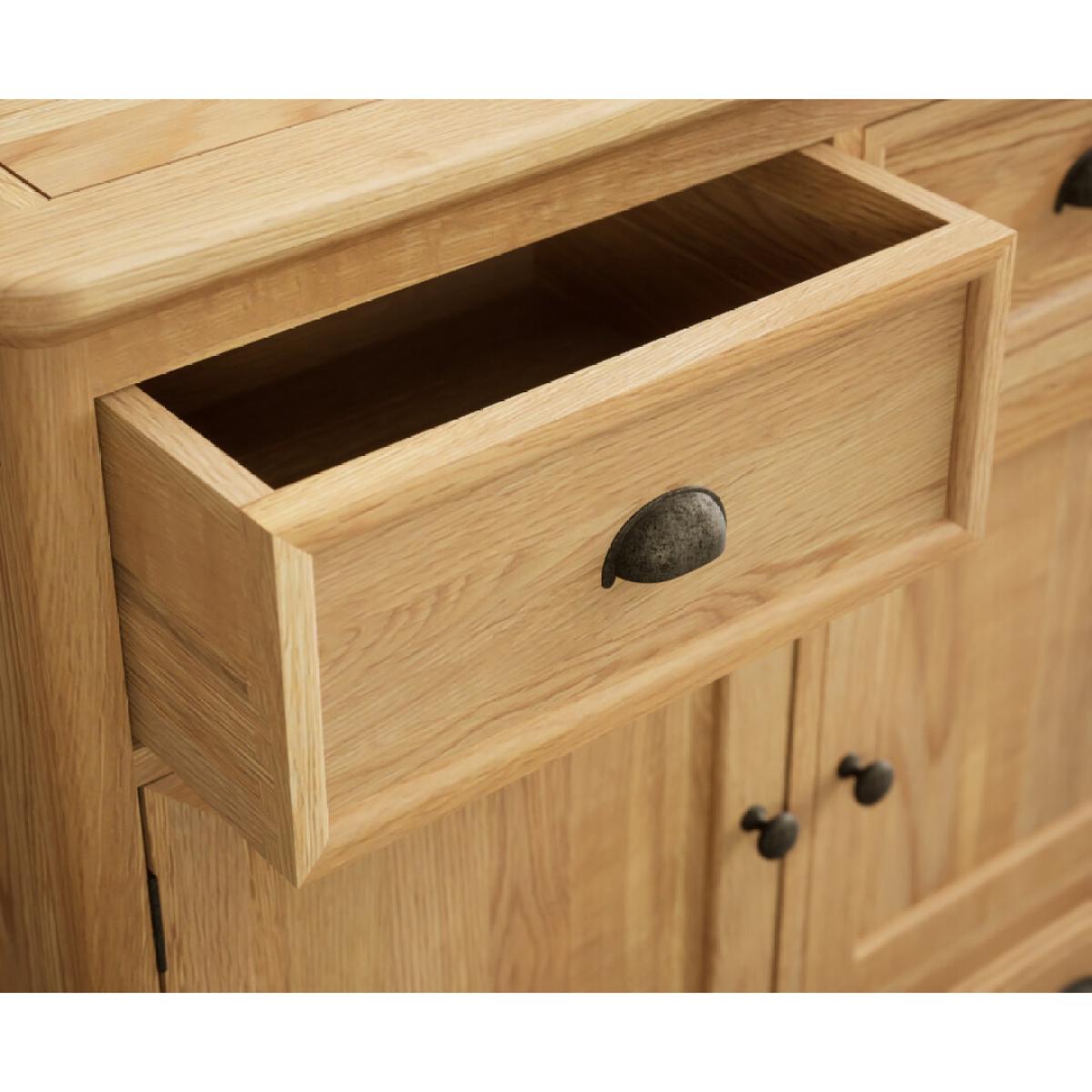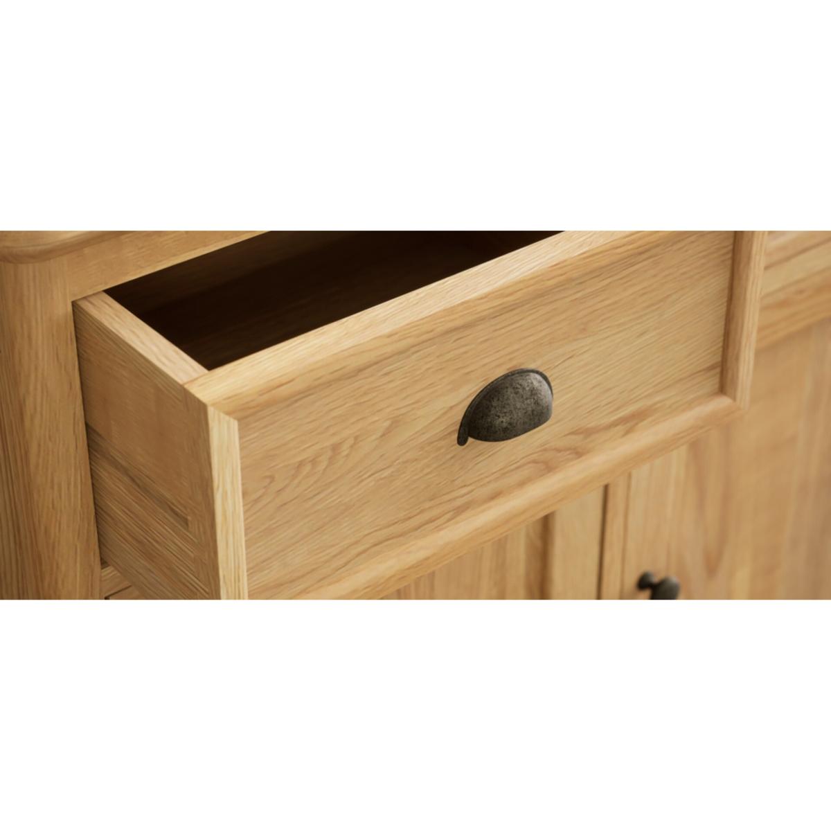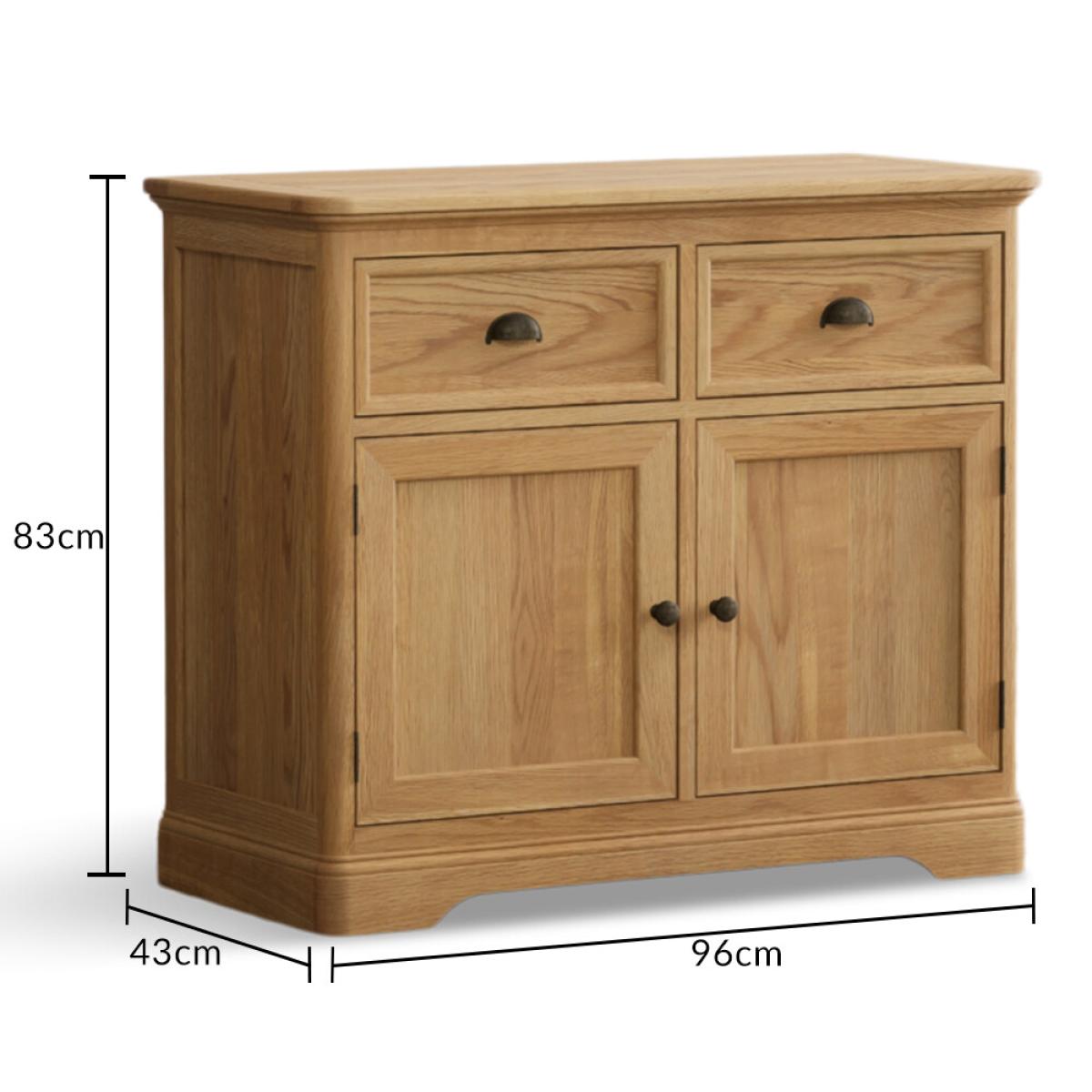 The Bridstow Natural Oak Small Sideboard is crafted from durable solid oak and features cupboards and Dovetail drawers.