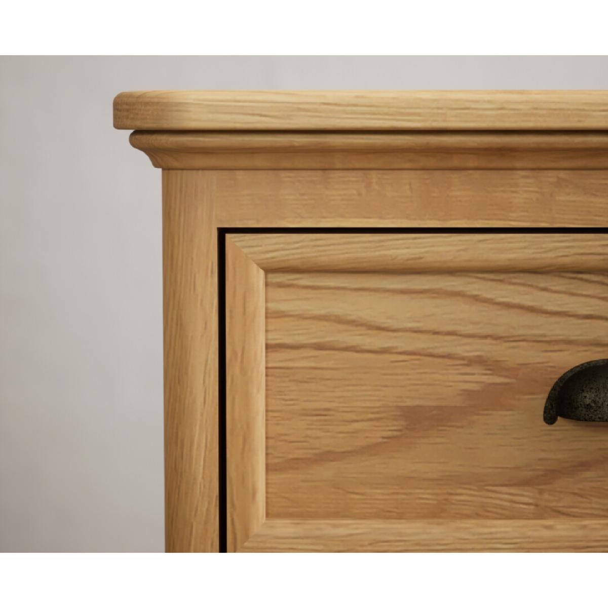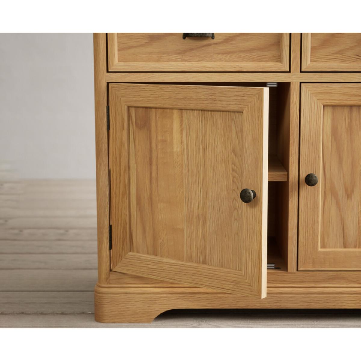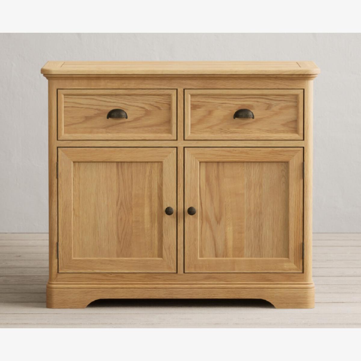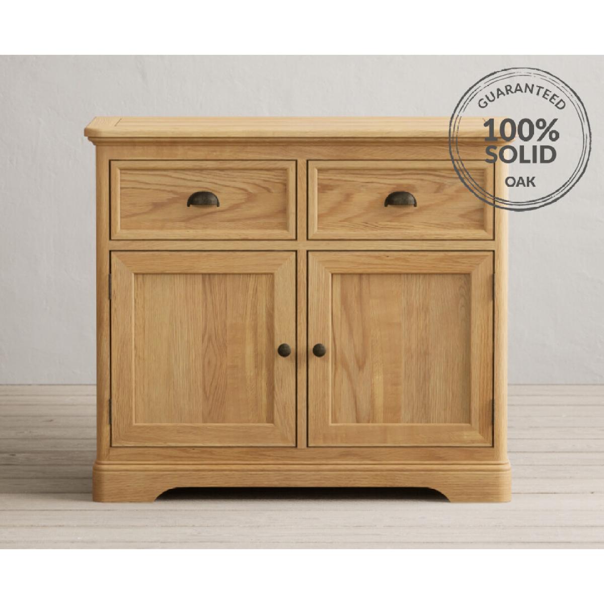 The Bridstow Natural Oak Small Sideboard is crafted from durable solid oak and features cupboards and Dovetail drawers.