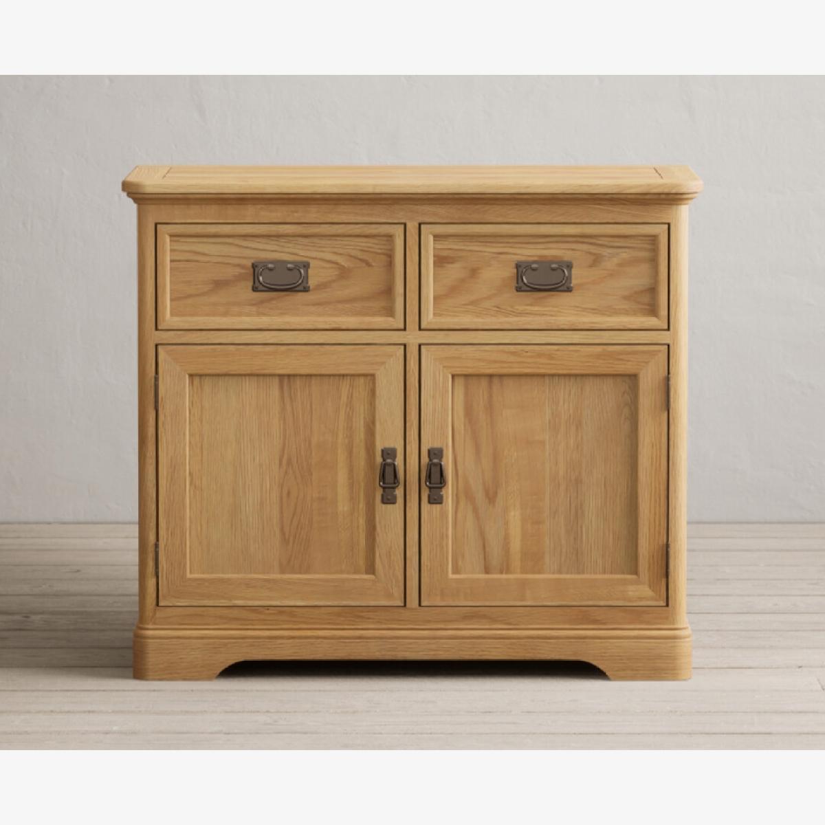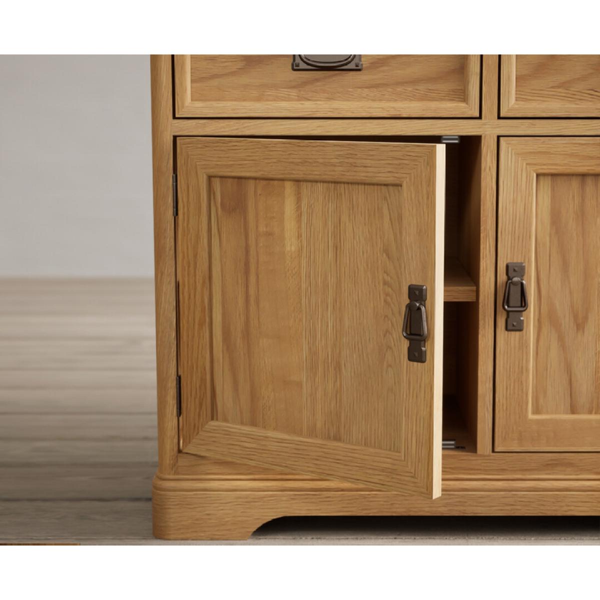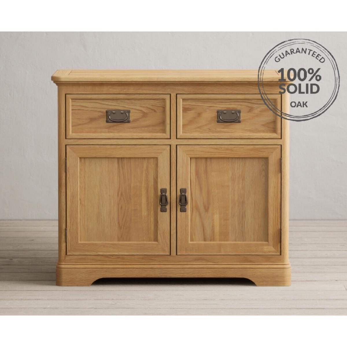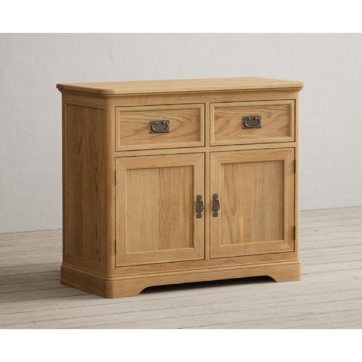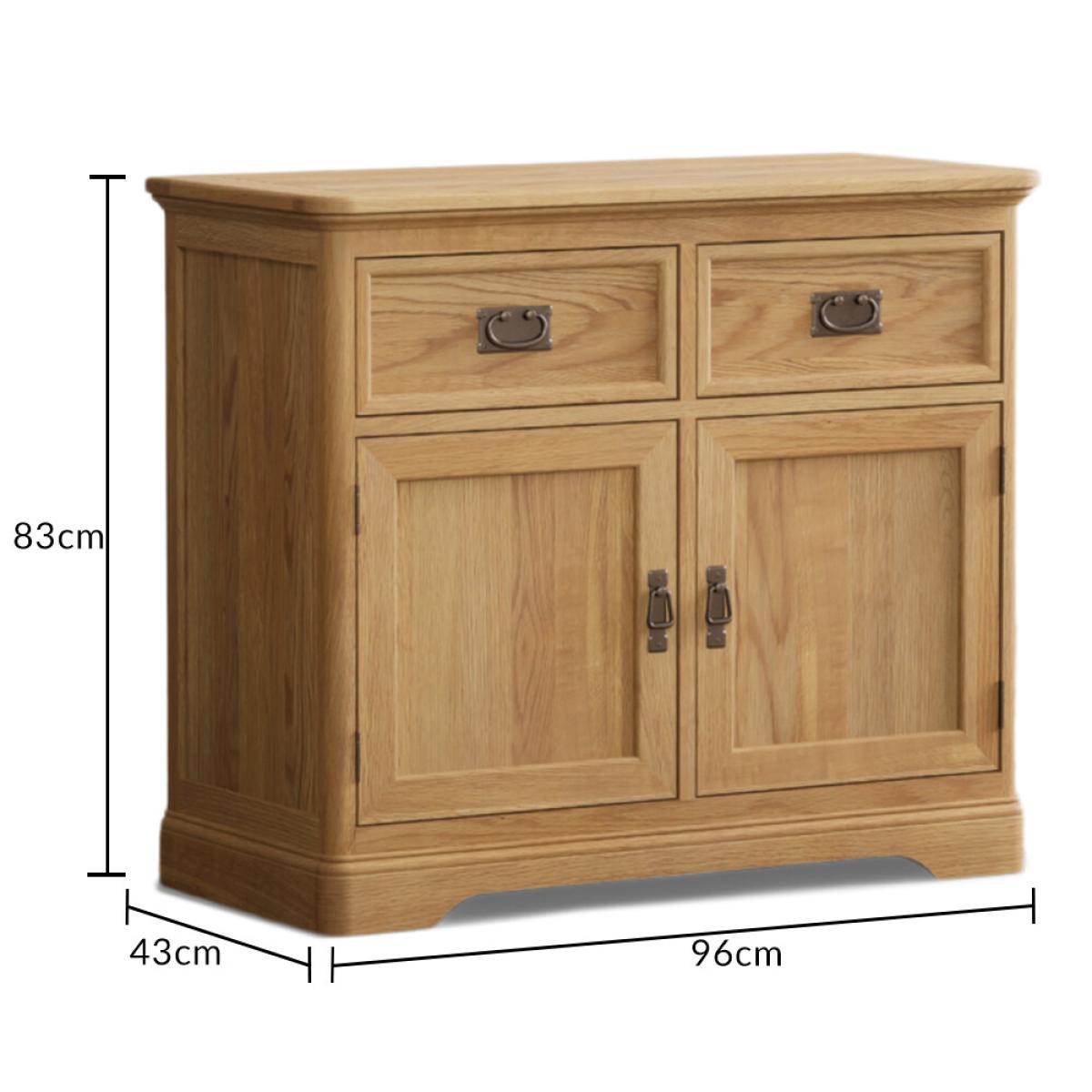 The Bridstow Natural Oak Small Sideboard is crafted from durable solid oak and features cupboards and Dovetail drawers.
