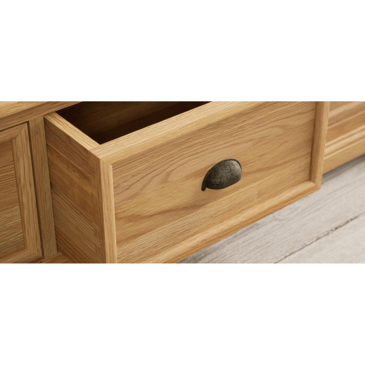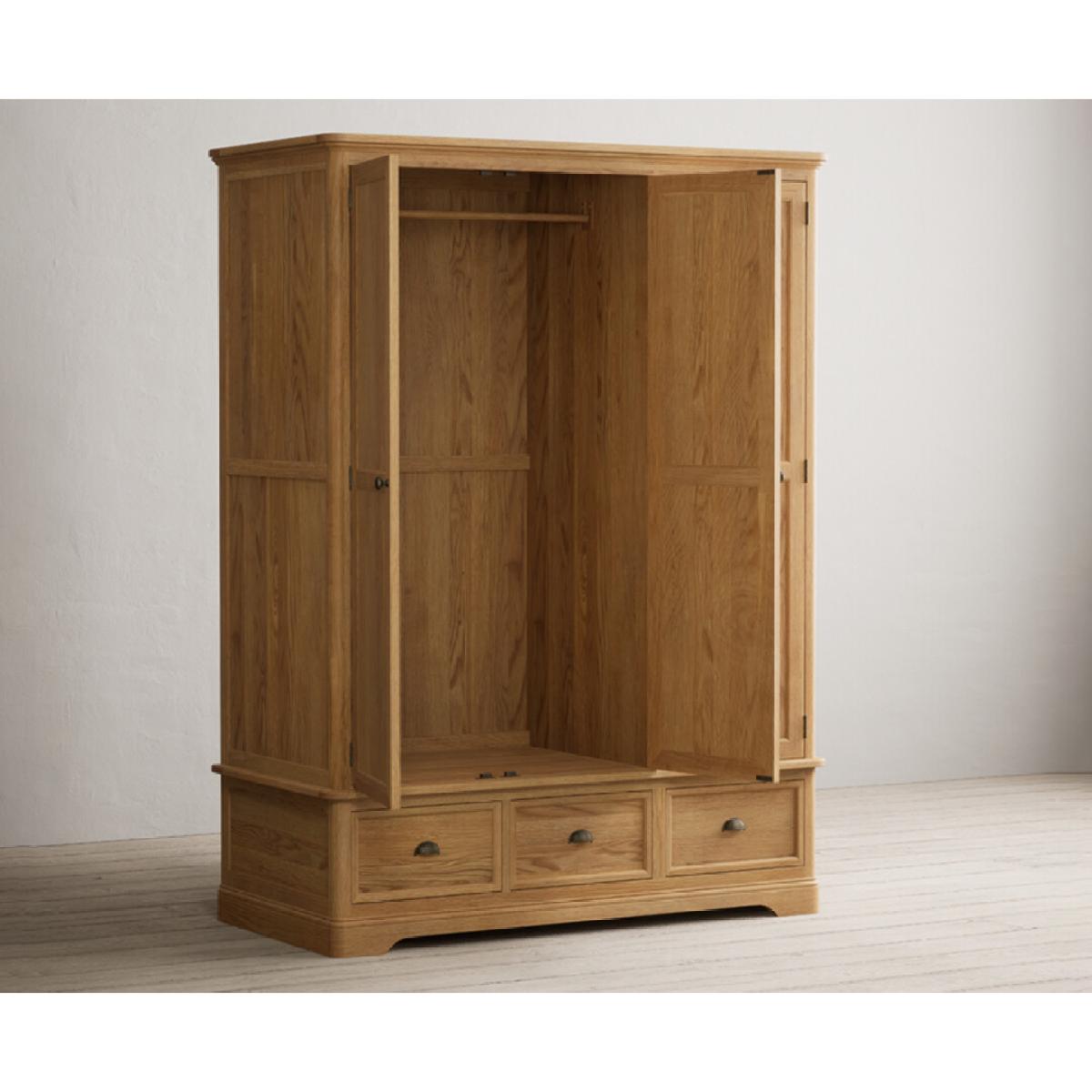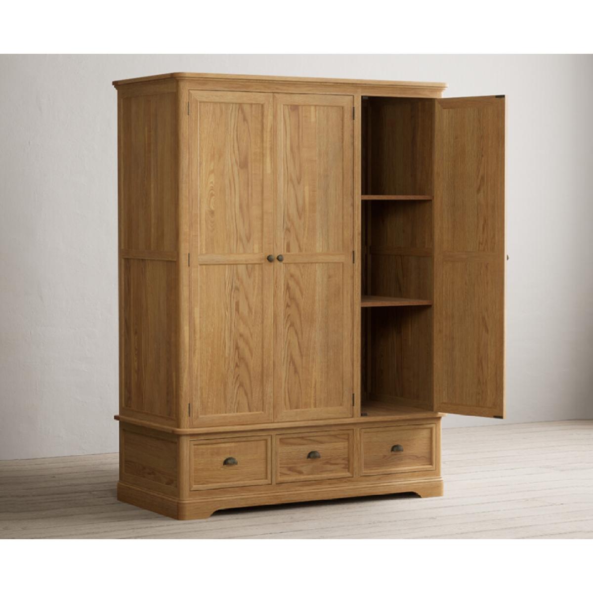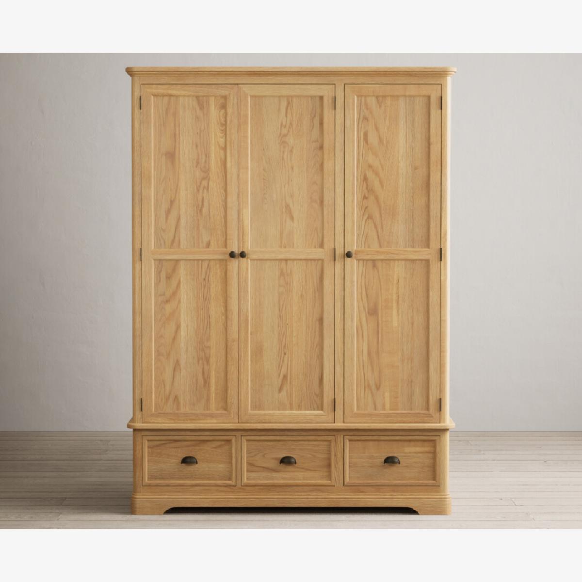 The Bridstow Natural Oak Triple Wardrobe is made from 100% solid oak, with hanging space, shelves and Dovetail drawers.