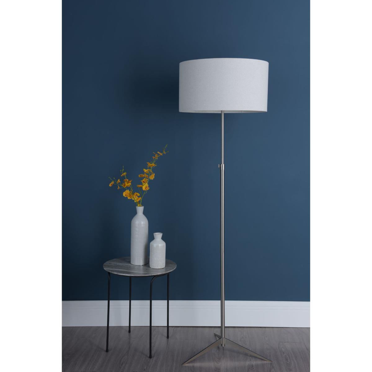 Offers a sleek and contemporary look for modern interiors. Finished in satin chrome and paired with a neutral fabric drum shade, this elegant design brings understated sophistication to any room. Perfect for living rooms, bedrooms, or reading corners, the Brielle provides soft, ambient lighting while complementing a wide range of décor styles.
