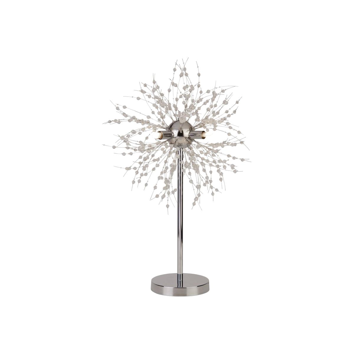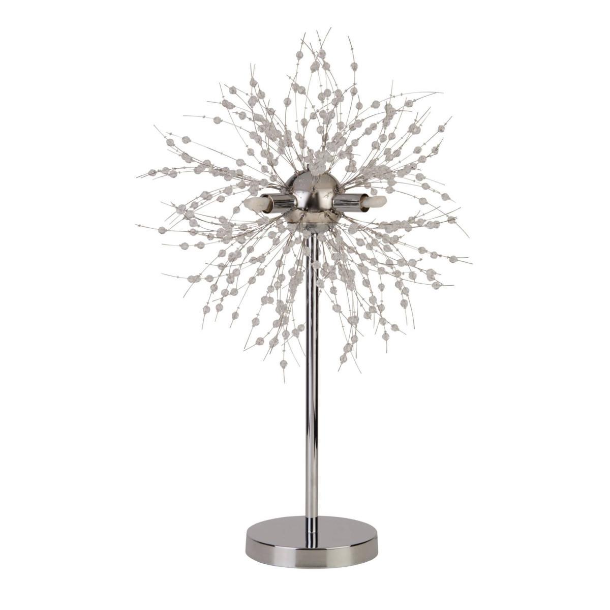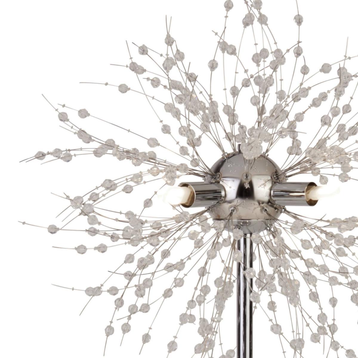 Contemporary table lamp boasting a polished chrome finish. A striking addition to your home, the Brielle Table Lamp is a beautiful fitting from Pagazzi Lighting. Finished in polished chrome throughout, this statement piece features delicate starburst style wire embellished with clear beads. It is perfect as a feature light in living rooms, hallways and bedrooms. Need Bulbs? We recommend using our 3w LED G9 capsule bulbs which are a great replacement for standard halogen bulbs.