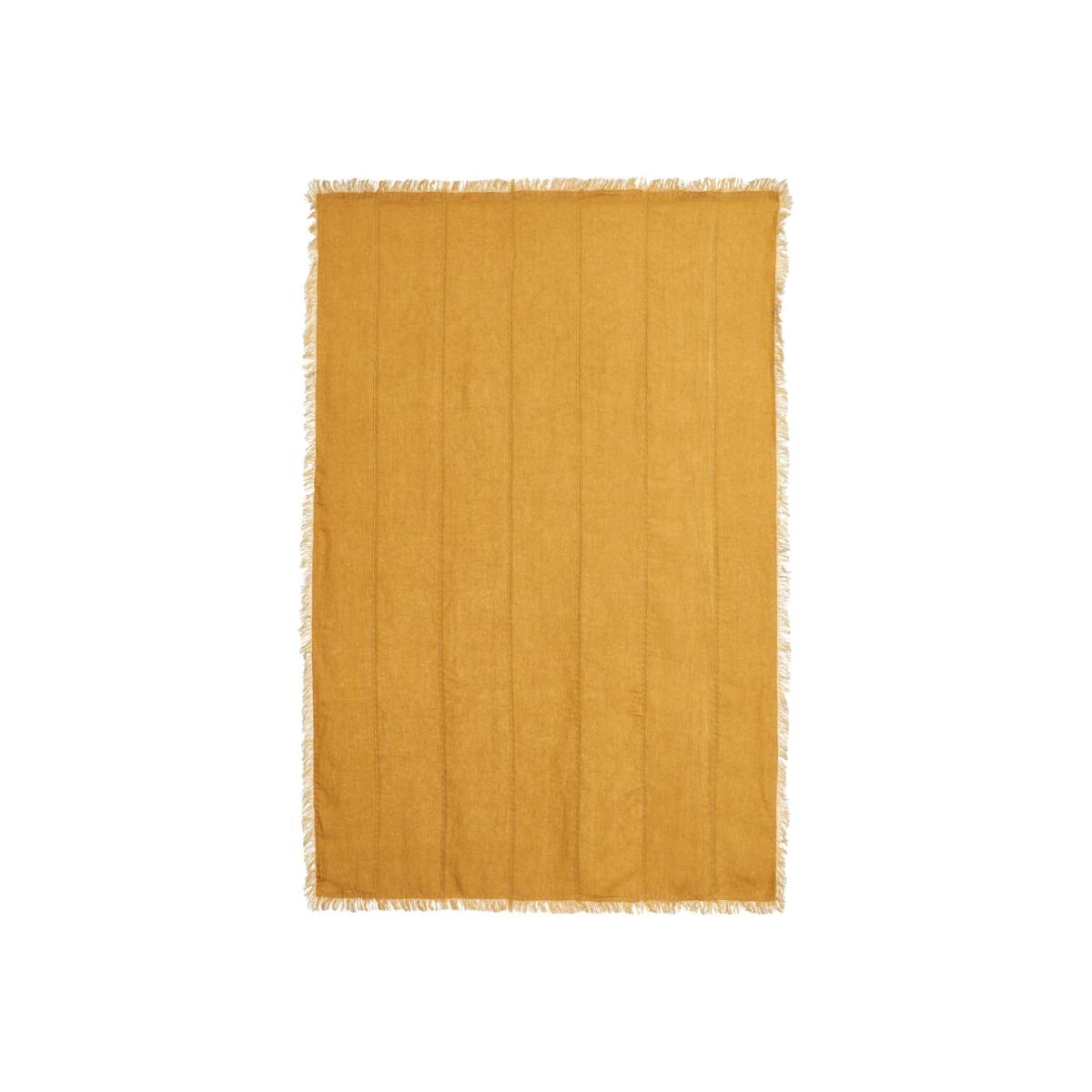 Our Brier Throw has a beautifully rustic appearance with a fringed border that decorates each side - made and applied by hand - alongside visible stitching. The Dijon yellow linen is machine woven on a power loom and then hand embellished by skilled artisans and tumbled for a washed finish and very soft-to-the-touch texture. The natural-coloured reverse allows you to choose your mood from day to day. Brier Linen Throw - Dijon Brier Linen Throw - Dijon