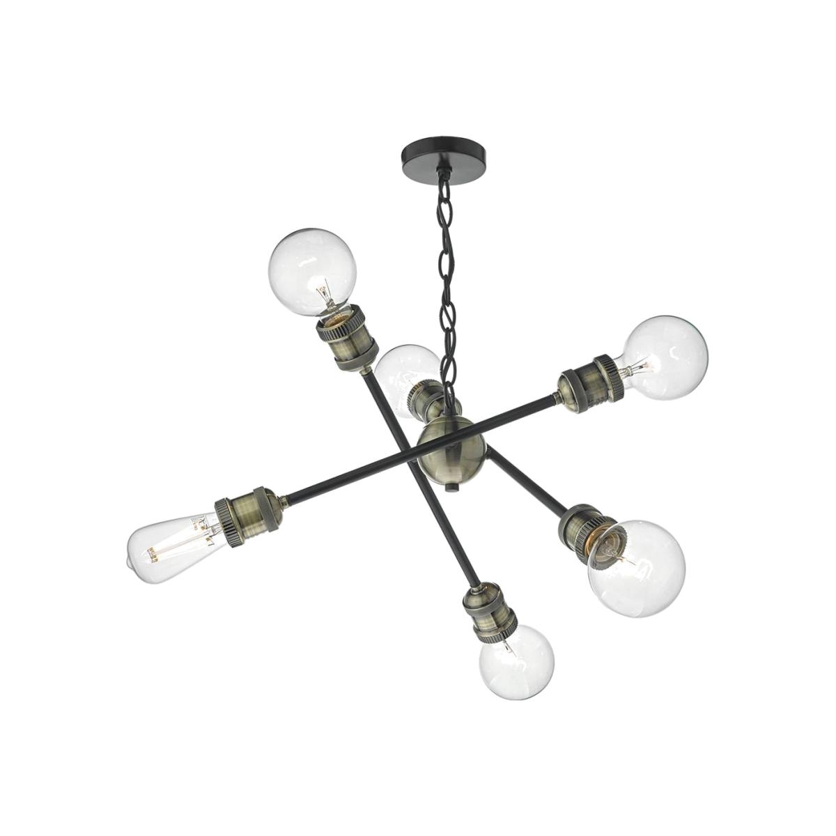 Industrial pendant ceiling light boasting an antique brass finish. The Brigade 6 Light Ceiling Light is an industrial fitting. The piece boasts adjustable matt black arms and antique brass lamp holders. The exposure of the light bulbs adds authenticity to the overall design. We think this light looks best with any of our E27 4w LED Vintage light bulbs for a rustic, warm glow.