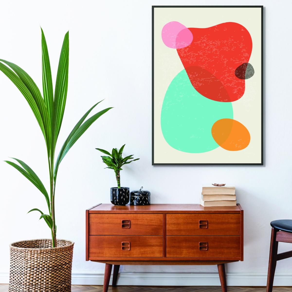 I love how the bright abstract shapes print brings a pop of colour and contemporary flair to any space. Its bold, geometric design makes it perfect for modern interiors, particularly in living rooms or home offices looking for an energetic statement piece. For styling, consider pairing it with minimalist surrounds to let the artwork truly stand out, or mix with accent cushions and accessories that pick out one of the colours to create a cohesive look. Due to its large size, it works best above a sofa or mantel to anchor a wall, helping to elevate a plain or neutral backdrop. Overall, it’s a playful yet sophisticated addition that can effortlessly invigorate a variety of interiors.
