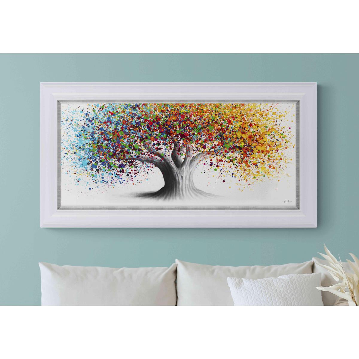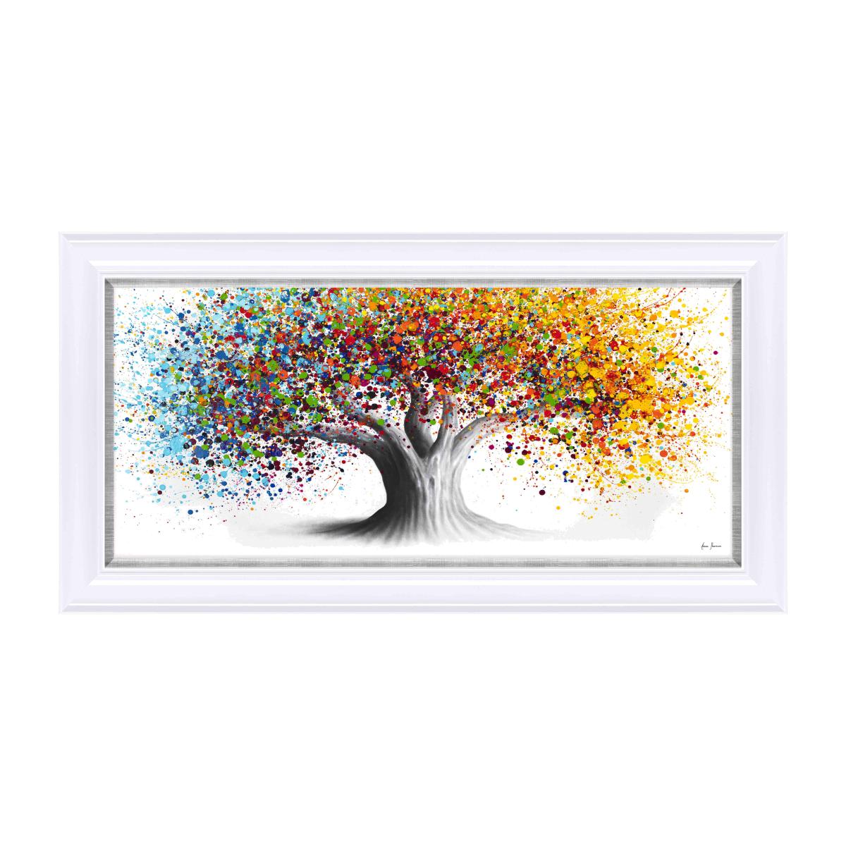 Bright and very beautiful, this visually stunning depiction of a tree is reproduced from an original work of art by Ashvin Harrison. Why you'll love it This stunning framed canvas of a tree exudes joy and vibrancy. Unique modern style in a glorious colour palette. Reproduced from original artwork by Ashvin Harrison. Glazed. Hand-painted embellishments add depth and texture. Glossy white frame with subtle silver accent. A Furniture Village online exclusive. Made in the UK. This framed canvas is part of the Furniture Village home accessories collection. What you need to know Supplied with a metal hanging fitting and nylon cord. Indoor use only. Dimensions Height: 60 cm (24 in). Depth: 2.5 cm (1 in). Width: 115 cm (46 in).