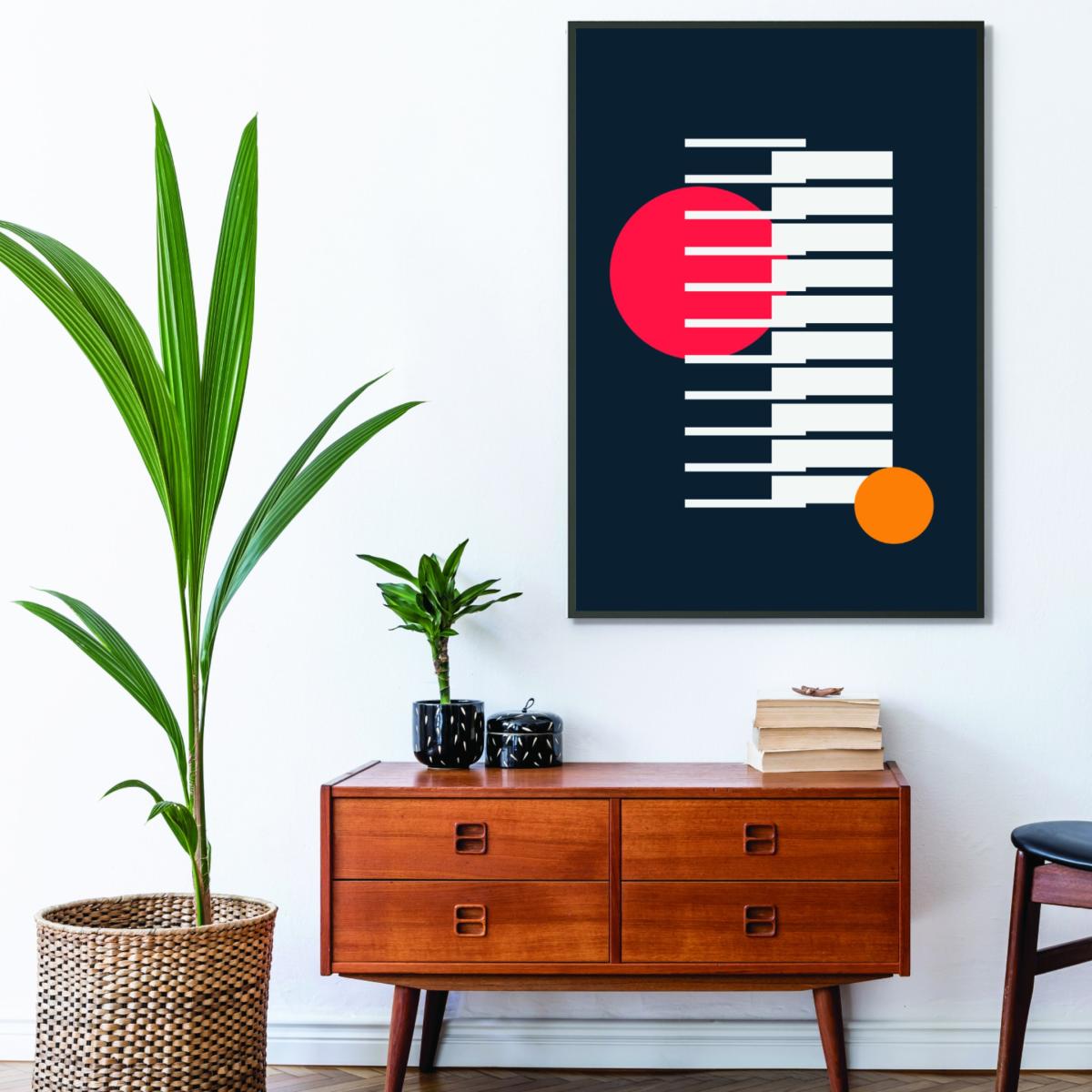 I love the Bright Geometric #1 print for its clean, modern aesthetic and bold use of colour. It works particularly well in contemporary or minimalist interiors, adding a vibrant focal point without overwhelming the space. I recommend pairing it with pared-back furnishings in neutral tones to let the artwork stand out, and consider placing it above a sofa or sideboard for maximum impact. Practical styling tips include framing it in a simple black or white frame to keep the look sleek, and layering it with smaller geometric or abstract accessories nearby to create a cohesive, curated feel. This piece is versatile enough to fit in urban apartments, offices, or even a colourful kids’ room for a touch of playful sophistication.