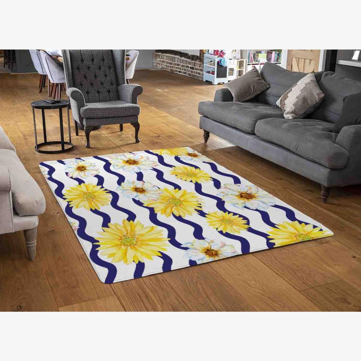 Bright Yellow Flowers Zig Zags Rug - Yellow / 150cm