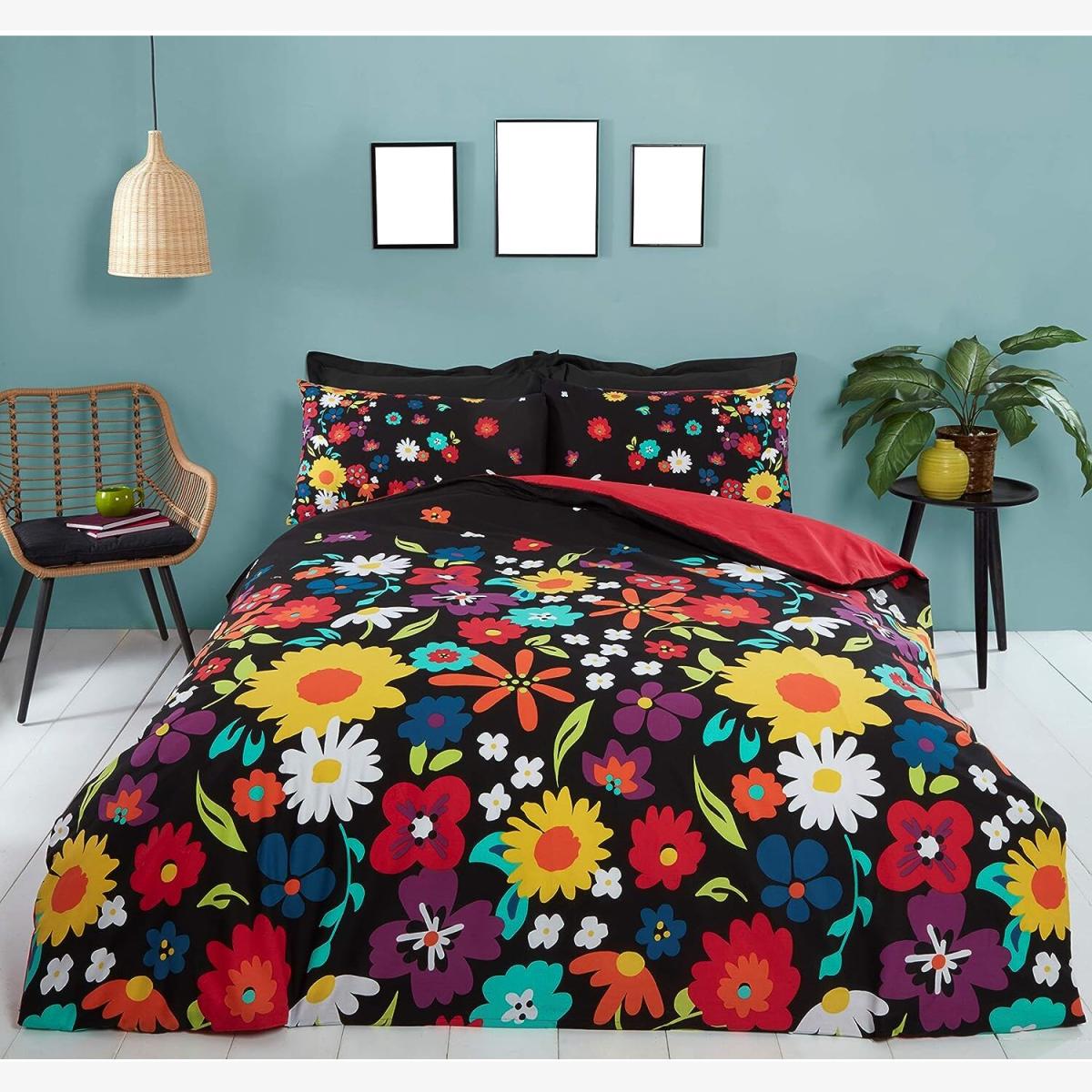 I love the bright, cheerful vibe of this duvet cover set; the floral pattern adds a playful yet stylish touch that works well in both contemporary and eclectic interiors. It’s particularly effective in boosting a neutral or minimalist room, adding colour and personality without overwhelming the space. For styling tips, pair it with simple, solid-coloured accessories-think crisp white or black sheets and matching cushions to keep the look cohesive. Since the design is quite lively, keep other décor understated to let the print really stand out. It's a fun, versatile choice for those wanting to introduce a burst of colour into their bedroom without a major overhaul.