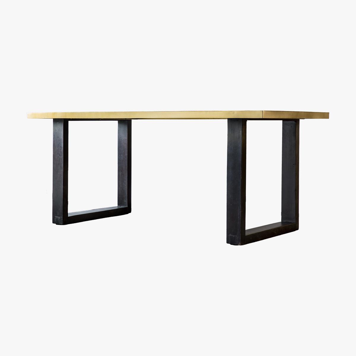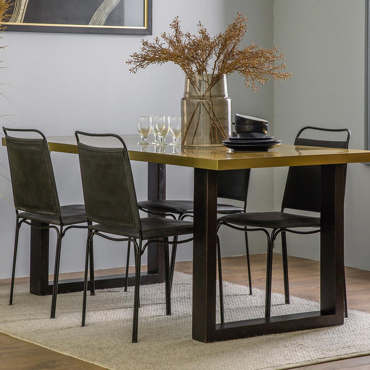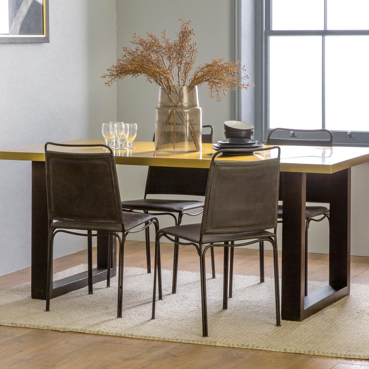 I often reach for the gold-topped dining table when I want a clean-lined piece that quietly lifts a room - the warm brass finish works equally well against exposed brick in an urban loft or on pale walls in a Scandi-inspired scheme. Its chunky black legs give it a grounded, architectural feel, so I’d team it with slim black or leather-backed chairs to echo that contrast. For styling, keep centrepieces simple - a low ceramic bowl of seasonal fruit or a single sculptural vase - and layer in a neutral jute rug underneath to define the dining zone without competing with the table’s metal sheen.