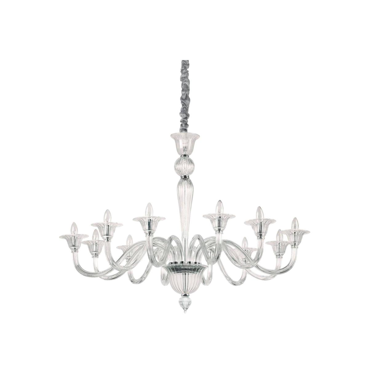 Available in two sizes, this chandelier range is sure to offer the perfect fitting for your room. The fittings are made from handcrafted clear or amber blown glass. The lights are arranged in a way which allows the light to shine in all directions, illuminating a large area. The classic candelabra style adds a traditional air to the setting. Includes a metal chain cover for the perfect finishing touch. The range offers twelve and eight light fittings. Class one.