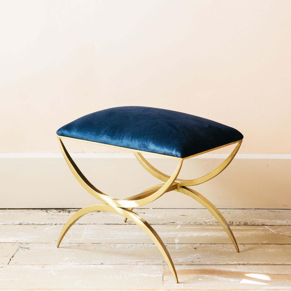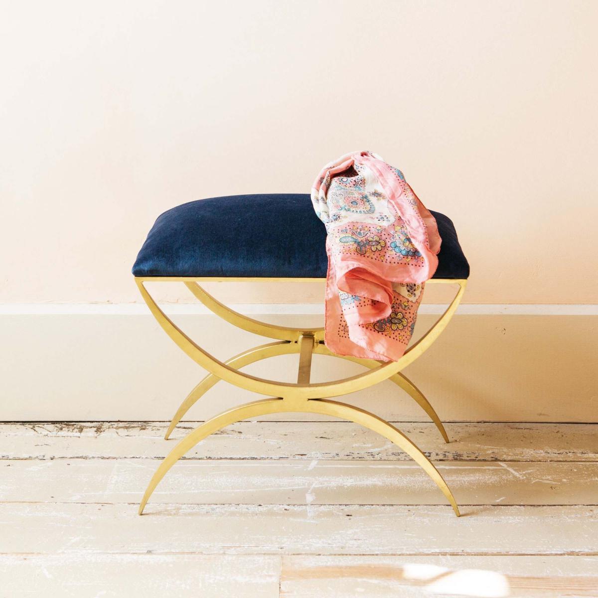 I love this stool for its luxurious feel and bold colour, which can add richness and character to both traditional and contemporary interiors. The dark blue velvet makes it a versatile piece, complementing neutral palettes or contrasting with lighter shades for a striking effect. It works well in living rooms as an occasional seat, or as a statement piece in bedrooms and dressing areas. Practical styling tips include pairing it with metallic accents-like gold or brass-to enhance its glamour, or using throws and cushions in complementary colours to soften its boldness. Overall, it’s a stylish and functional addition that brings texture and colour into any space.