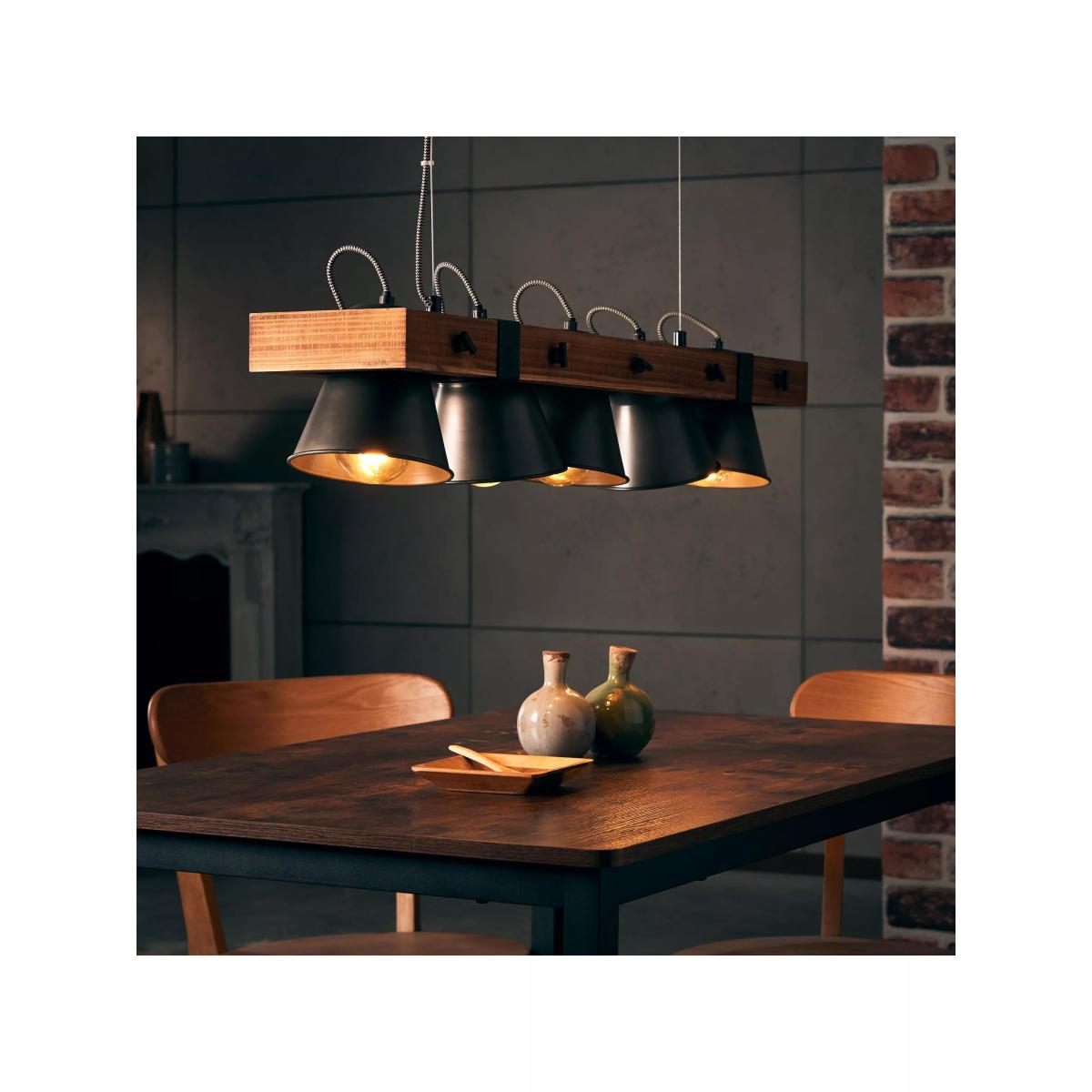 As a distinct design feature, pendant lights immediately stand out in any room. They direct light downward, making them perfect for illuminating dining tables. This modern take on the classic material of wood brings a cosy atmosphere through its natural design. With a length of 95cm, this pendant light is particularly well-suited for use above larger tables. The illuminated area can be adjusted by positioning the lamp heads as needed. No bulbs are included. The light is compatible with standard bulbs, and LED bulbs can be used without any issues. The fitting is dimmable when paired with suitable bulbs. All installation materials are included. By choosing this product you are supporting responsible management of the world's forests. The Forest Stewardship Council® (FSC®) is a global, not-for-profit organisation that helps take care of forests and the people and wildlife that call them home. To learn more, visit www.fsc.org.