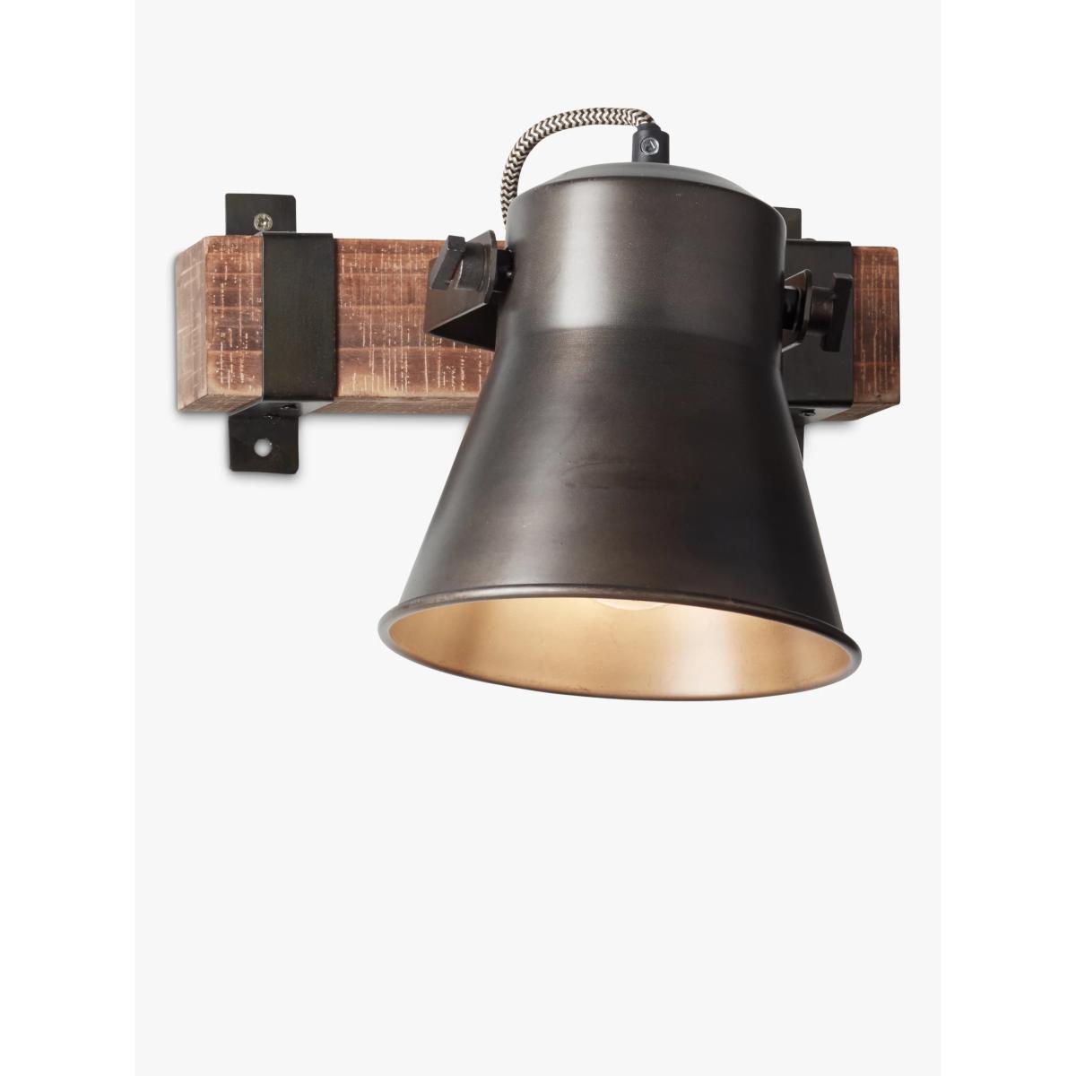 Plow single wall light made from FSC wood with a black metal shade. Bulb not included.