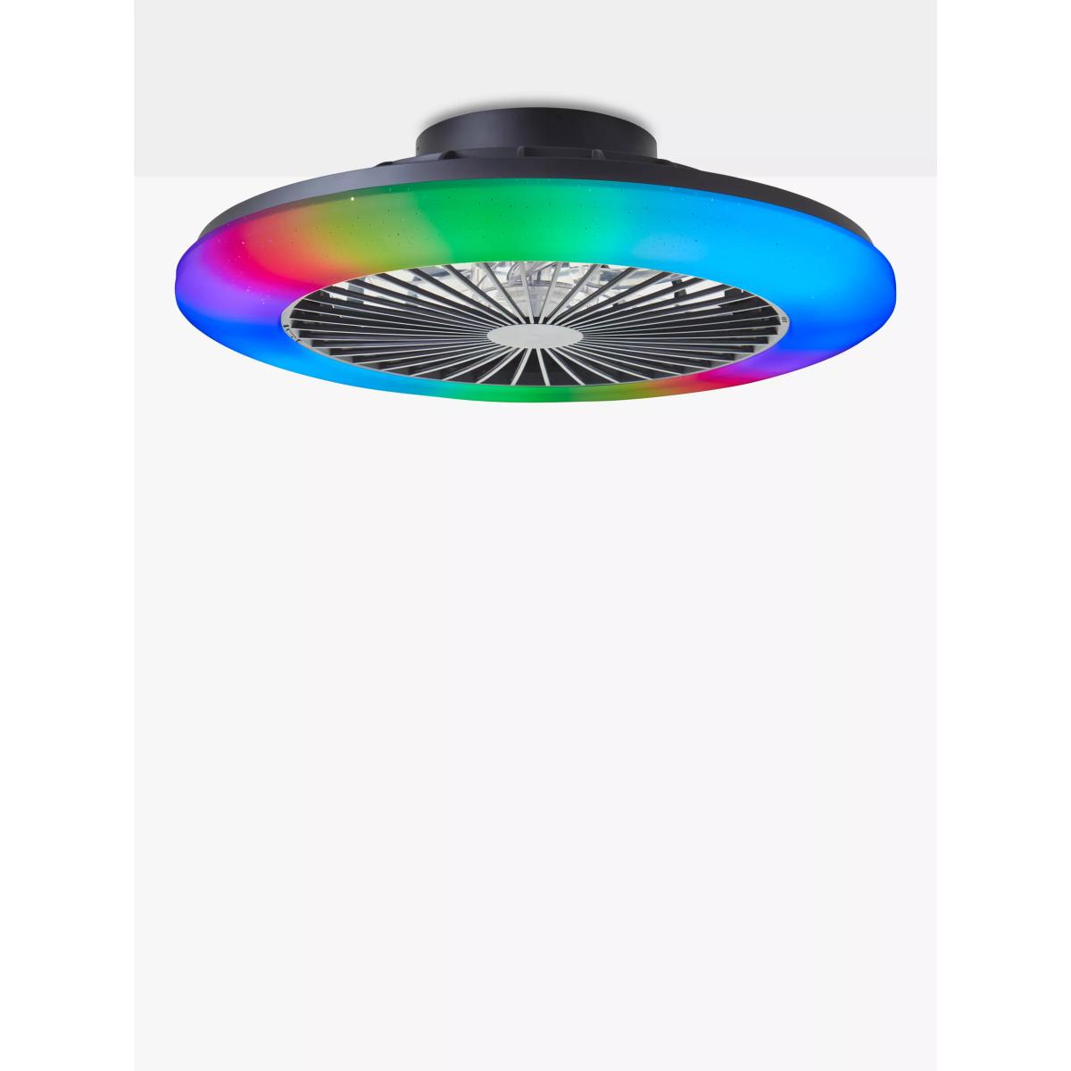This ceiling light is more than just a light source – it’s a true multi-talent for your living room, bedroom, or office and includes a powerful fan not only providing stylish cooling but also offering thoughtful climate control that integrates perfectly into the overall design. The included remote control makes operation effortless. Adjust the brightness, change the light colour, and select the RGB mode to create an atmosphere that suits your personal style. The remote control also lets you manage the fan settings. Enjoy a gentle breeze on warm days or ensure optimal air circulation in the room – all from the comfort of your favourite spot.