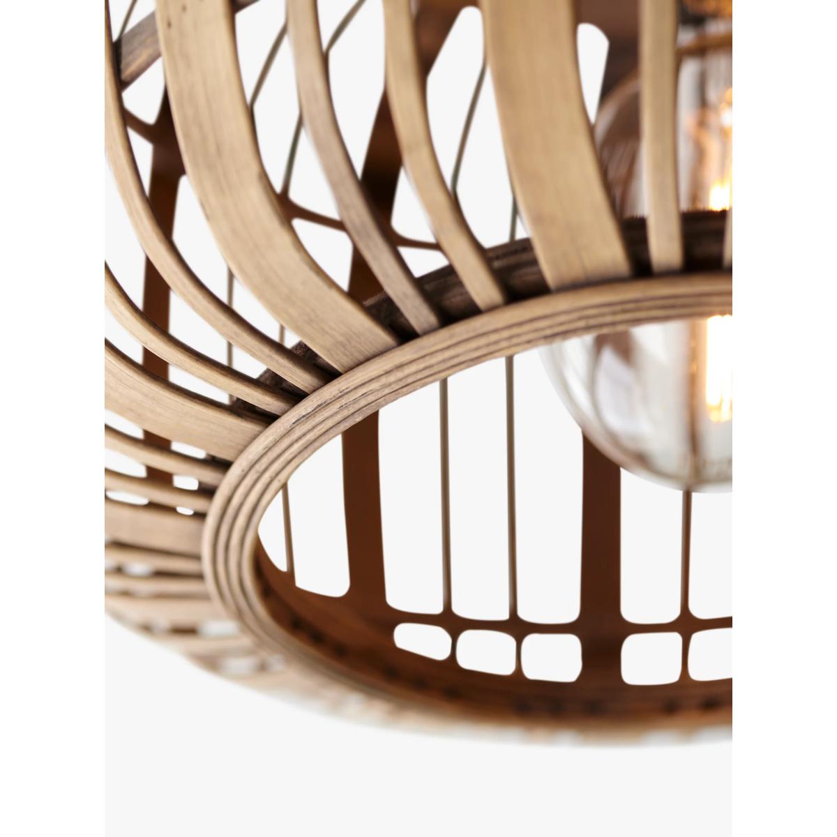 The Woodrow ceiling light adds a decorative touch wherever it's placed, from the living room to the study. Made from bamboo, this natural material has a particularly cosy charm, giving off a warm white glow that creates a homely and comfortable feel. The Woodrow is dimmable when paired with a suitable bulb.