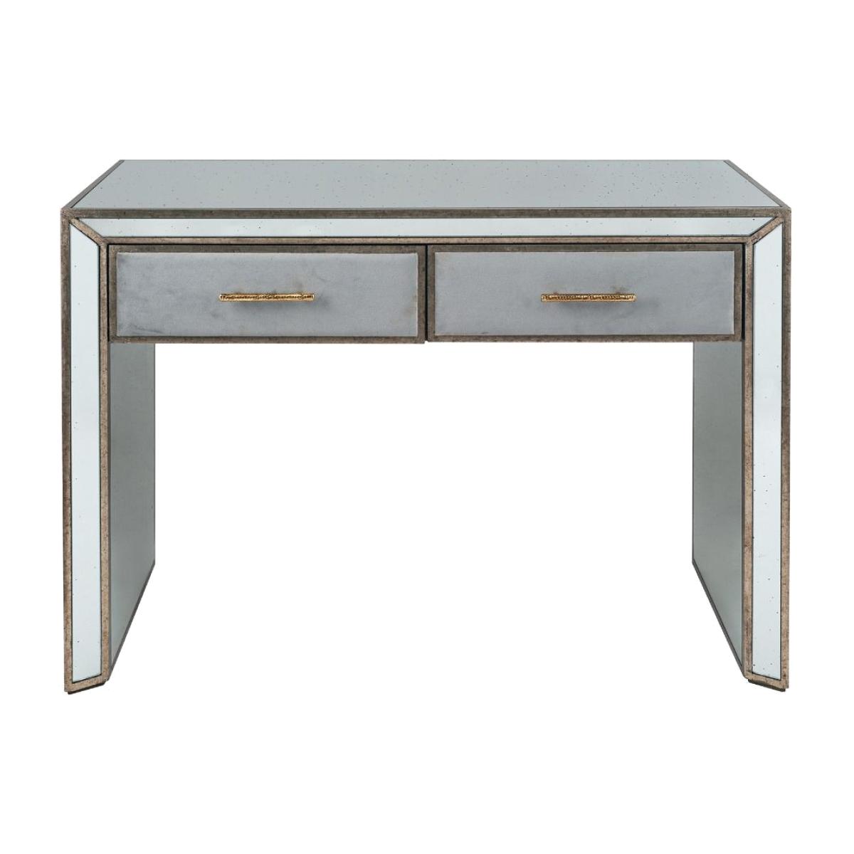 I really like this console because of its versatile antique metal and mirror finish, which adds a touch of elegance without feeling too formal. It's great in both classic and contemporary interiors - works well in hallways for a stylish arrival space or behind a sofa as a functional surface. To style it, consider placing a statement lamp, a few decorative objects, or a small plant to keep the surface balanced and inviting. Its reflective surface can help brighten a room and create a sense of space, making it a practical yet chic choice for enhancing various interiors.