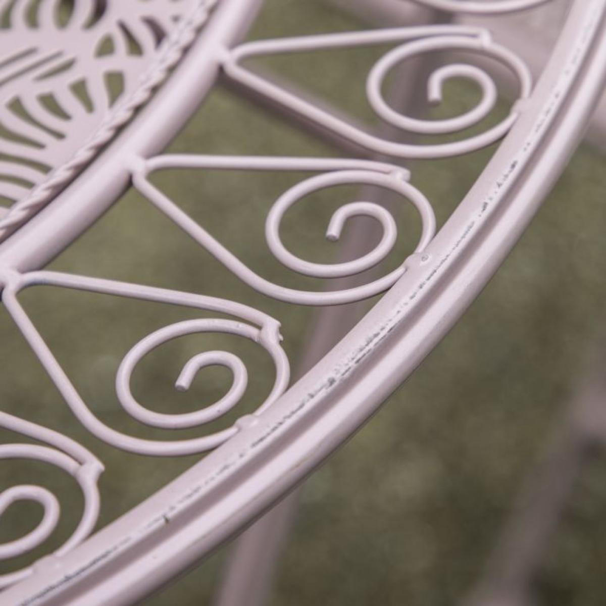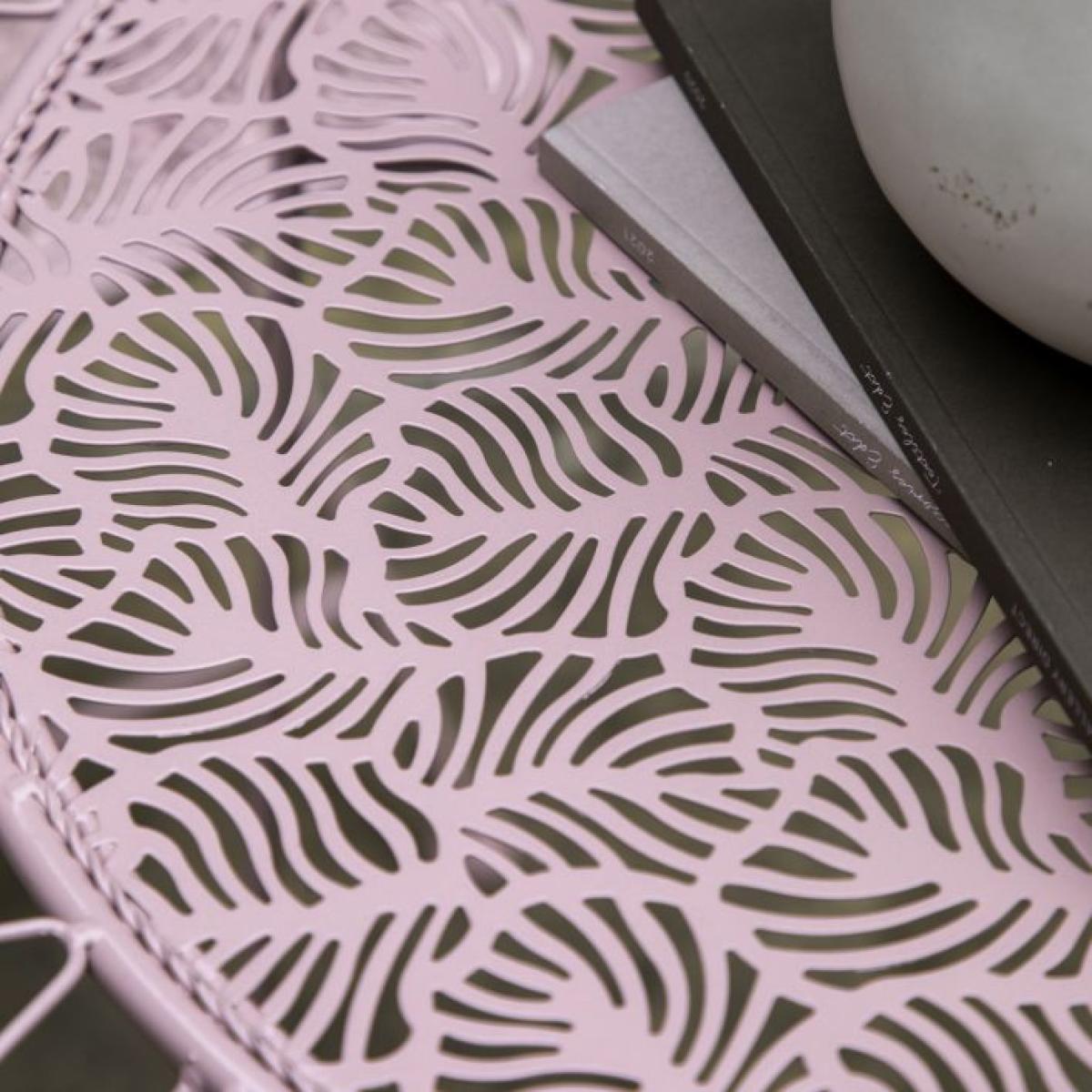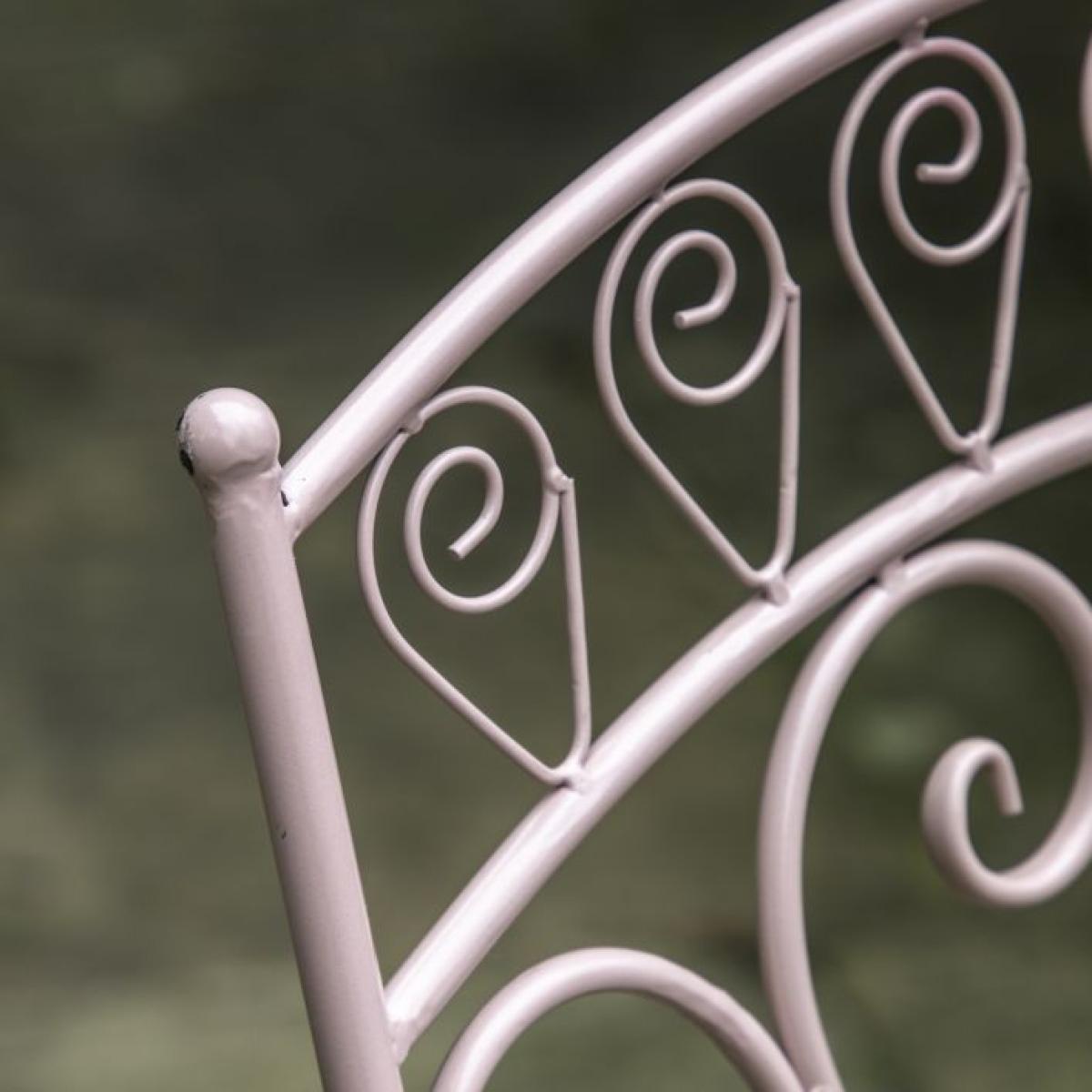 Ideal for balconies, smaller outdoor spaces and cosy garden corners, this lovely set offers a bistro café style. Crafted from metal in an unusual lovely pink finish, the design is inspired by nature, with the pattern on the table top and chair seats evocative of leaves and trees. The table and chairs fold for easy storage when not in use. It is also available in a deep metal patina finish.