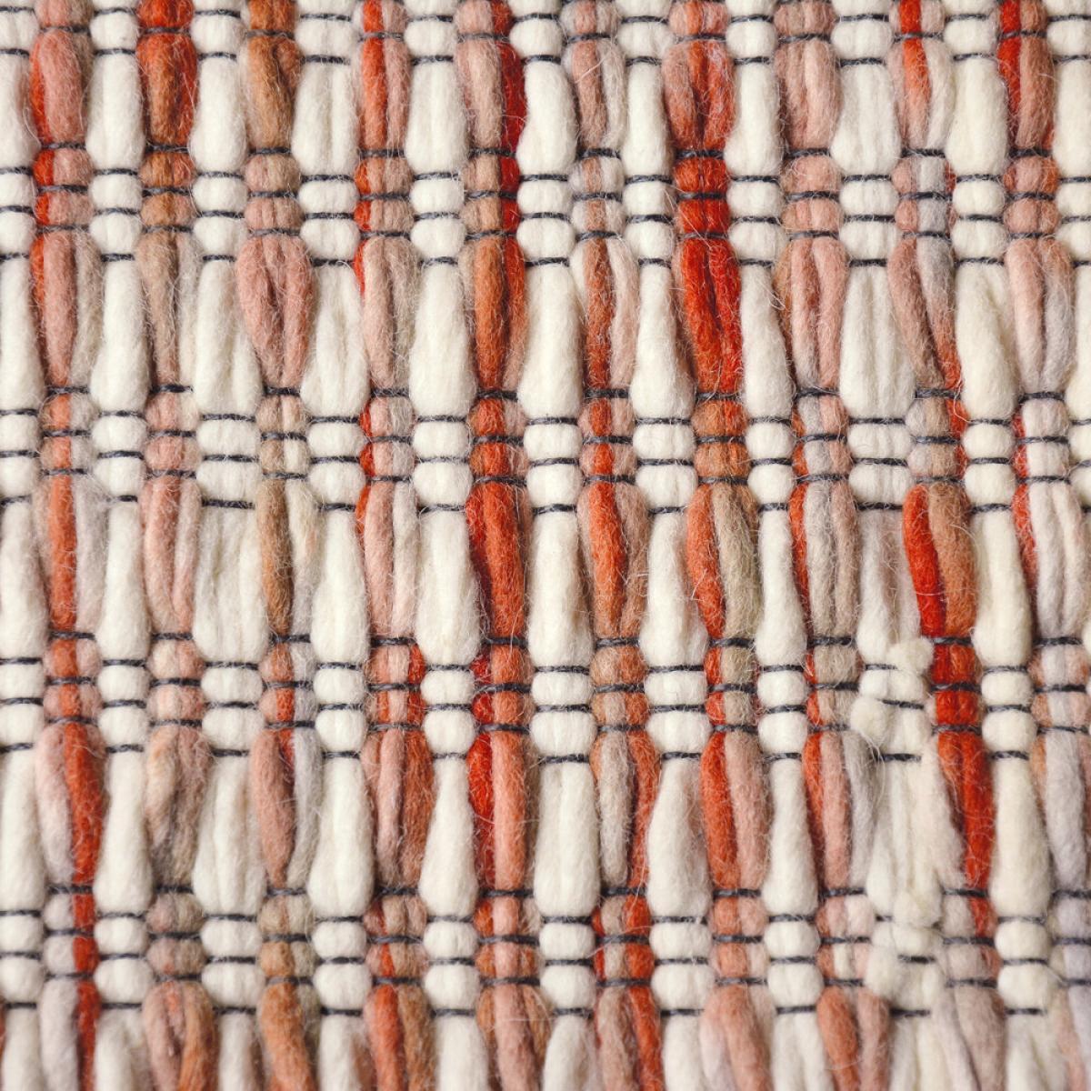 Brighten up your floors in style with this Grain rug from Brink & Campman. Crafted from 100% pure new wool, it features a handwoven thick loop texture in red, pink, and white shades. Available in three shades, this rug is the perfect piece to transform any space.