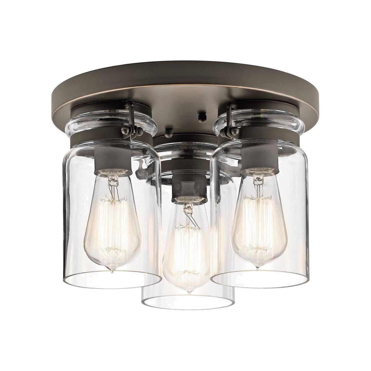 Brinley 3 Light Flush Mount Ceiling Light Brushed Nickel, E27 - Brushed Nickel