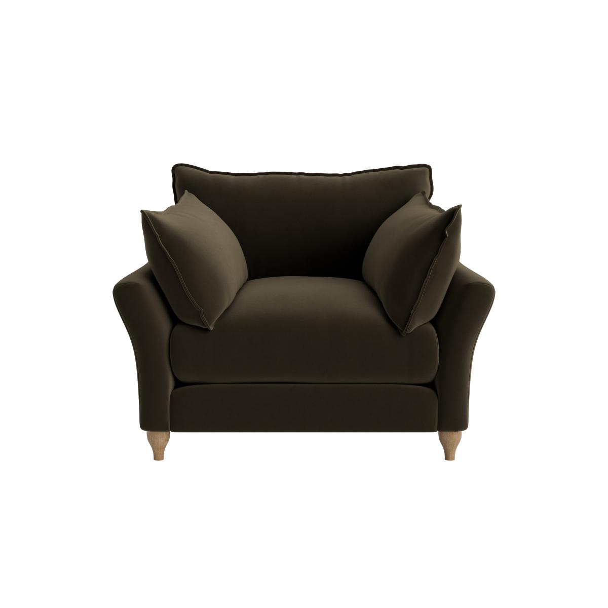 The Brioche armchair is a versatile piece that works well in both modern and traditional settings. I love its compact size and plush cushions, making it perfect for cosy reading nooks or small living rooms. Its neutral, dark tone provides a sophisticated silhouette that pairs easily with a variety of colour schemes - think soft neutrals, rich velvets, or even patterned fabrics for added visual interest. For styling tips, consider layering with textured throws or contrasting cushions to add personality, and pair it with a sleek side table or a statement lamp to create a functional, inviting corner. Its understated elegance makes it a practical yet stylish choice for a range of interiors.
