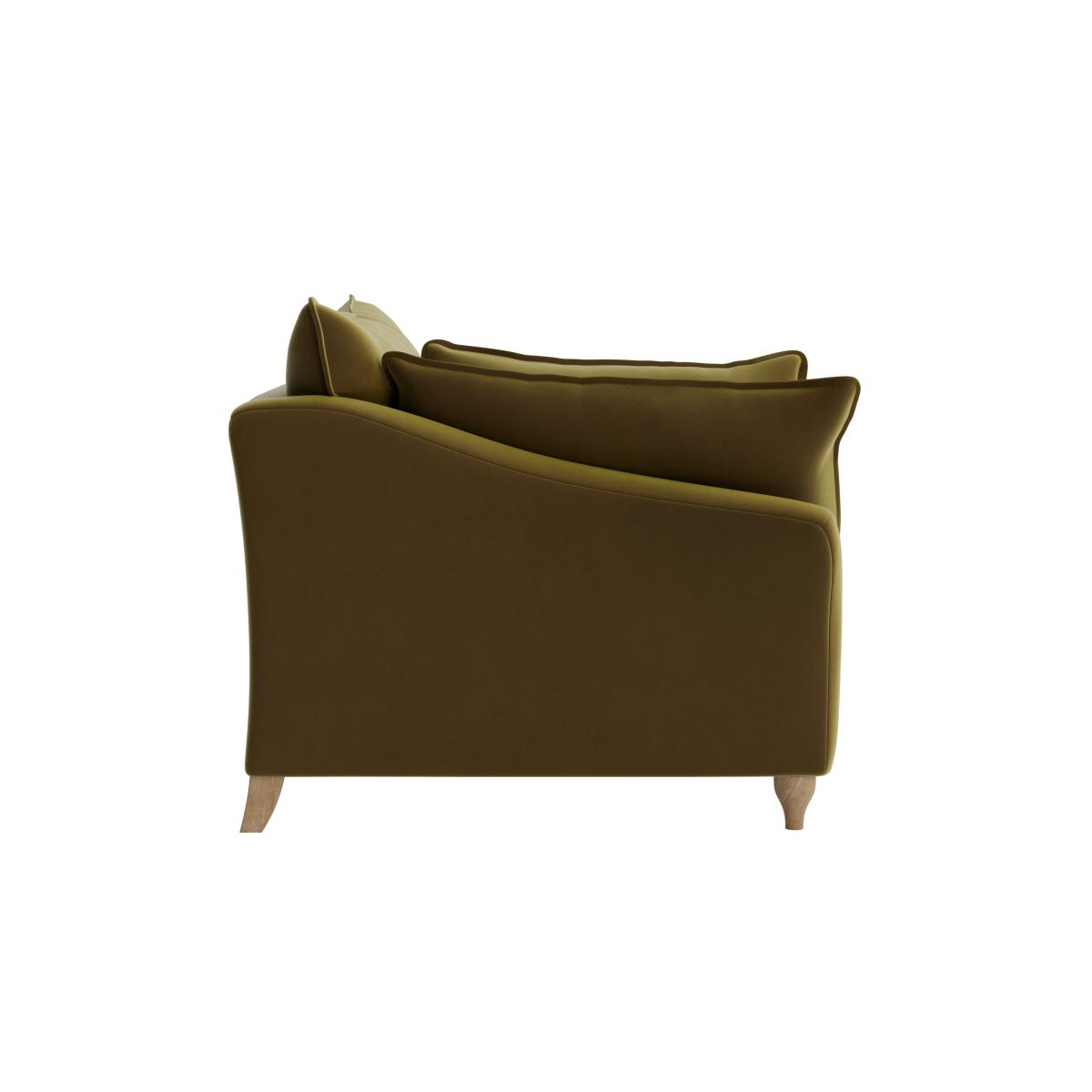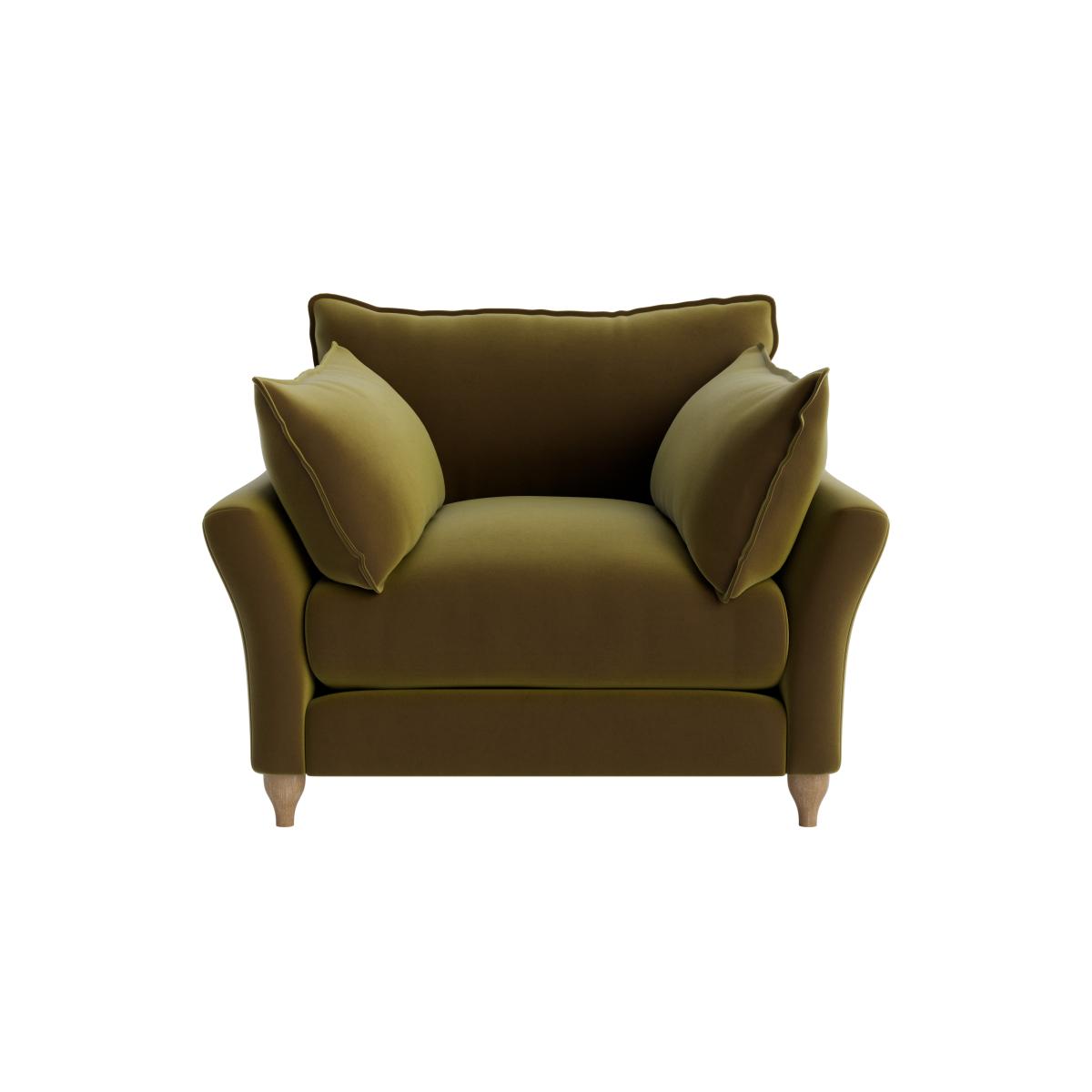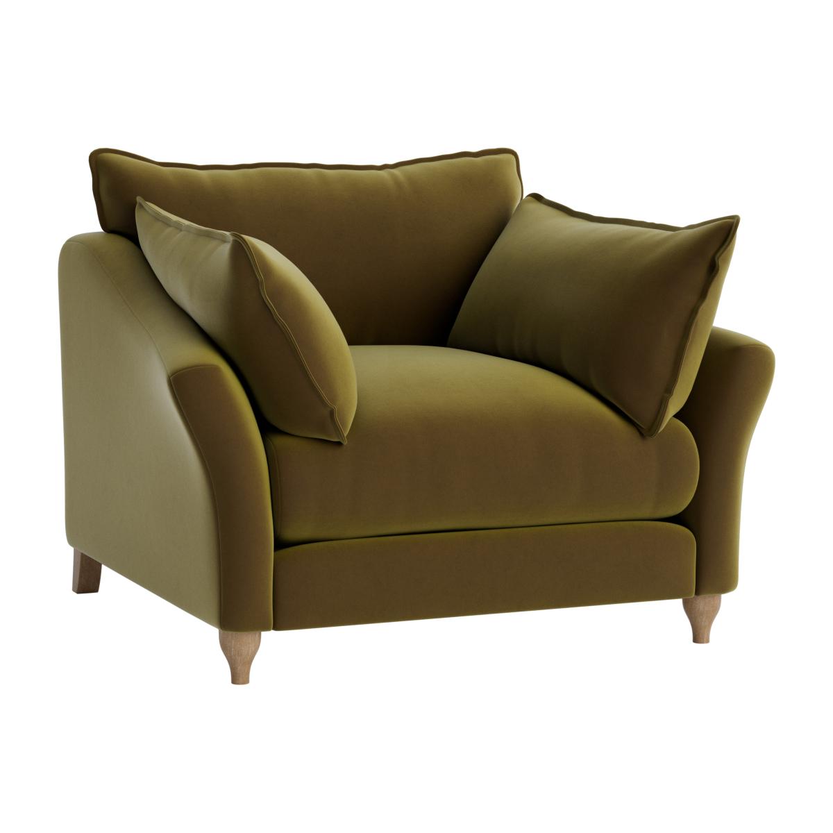 I love this armchair for its inviting shape and plush design, making it ideal for cosy corners or reading nooks. Its substantial presence and neutral olive tone give it versatility, working well in both modern and traditional interiors. To style it effectively, consider pairing it with textured cushions or a throw in complementary colours for extra comfort and visual interest. It also works beautifully if placed beside a statement side table or within a layered seating arrangement to create a welcoming, lived-in feel. Overall, it’s a practical and stylish choice that adds warmth and character to any space.