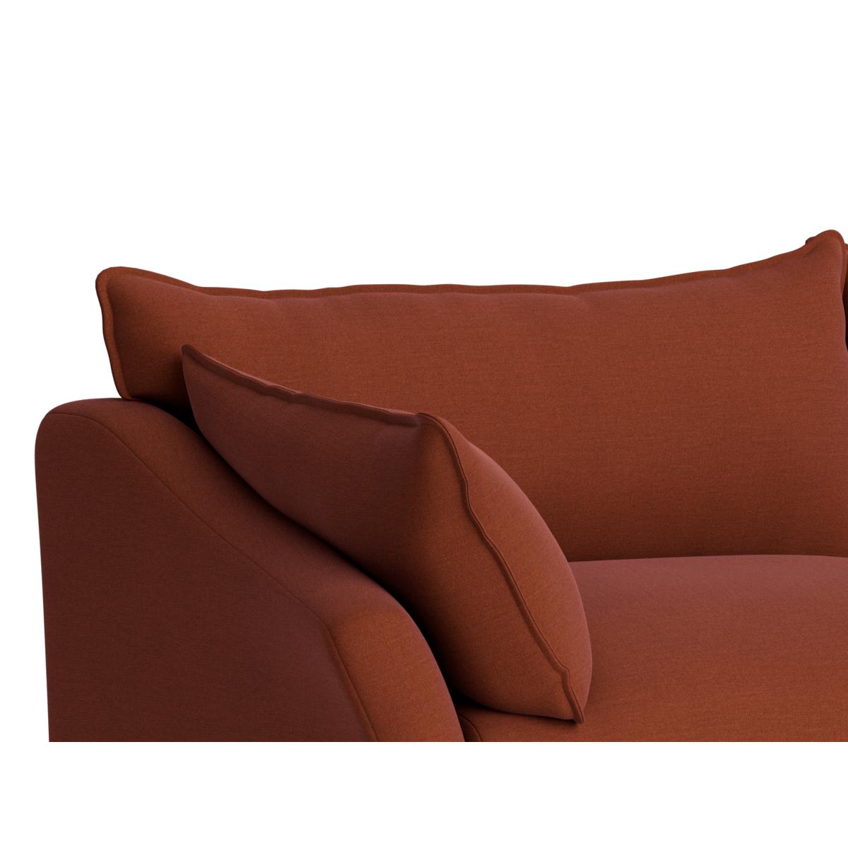 I really like this sofa; it’s versatile and timeless with its classic silhouette and warm terracotta hue. It works well in both modern and traditional interiors, adding warmth and character to a space. For styling, consider pairing it with neutral or textured cushions to soften the look, or play with contrasting colours to make it a focal point. Practical tips include ensuring the sofa’s size suits your room, and placing it in a well-lit area to highlight its rich colour. Its classic shape makes it a flexible piece that can adapt to various decor styles, from cosy Scandinavian to eclectic boho.