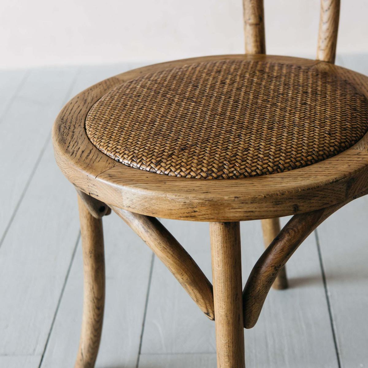 This classic bistro chair is full of french café charm. Crafted in a beautifully rustic-looking oak with a webbed seat adding texture, relax at the kitchen table with your favourite cup of coffee.