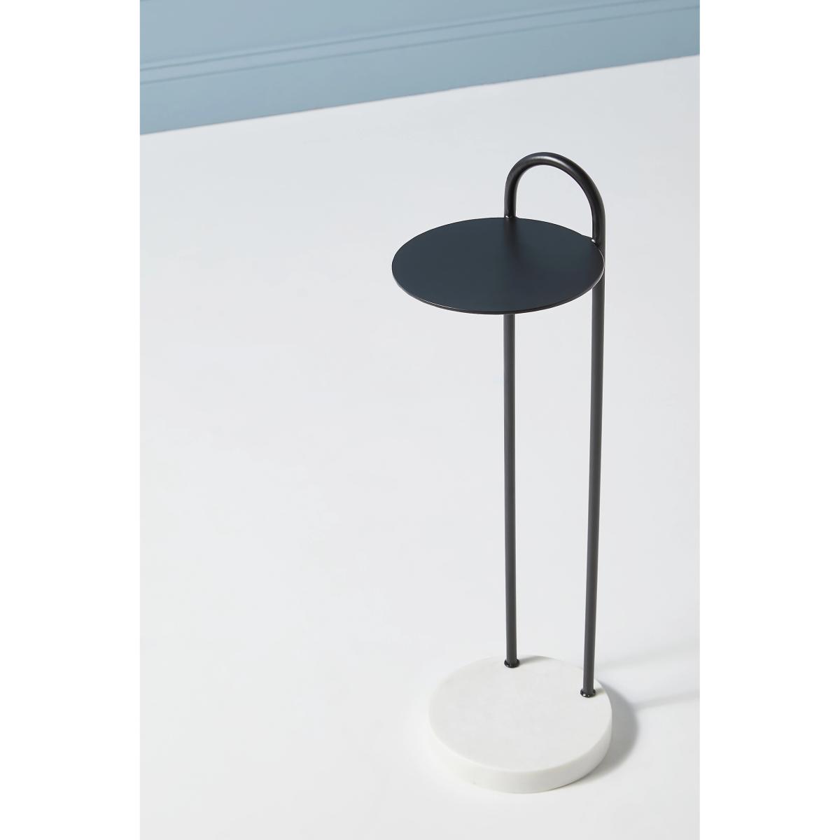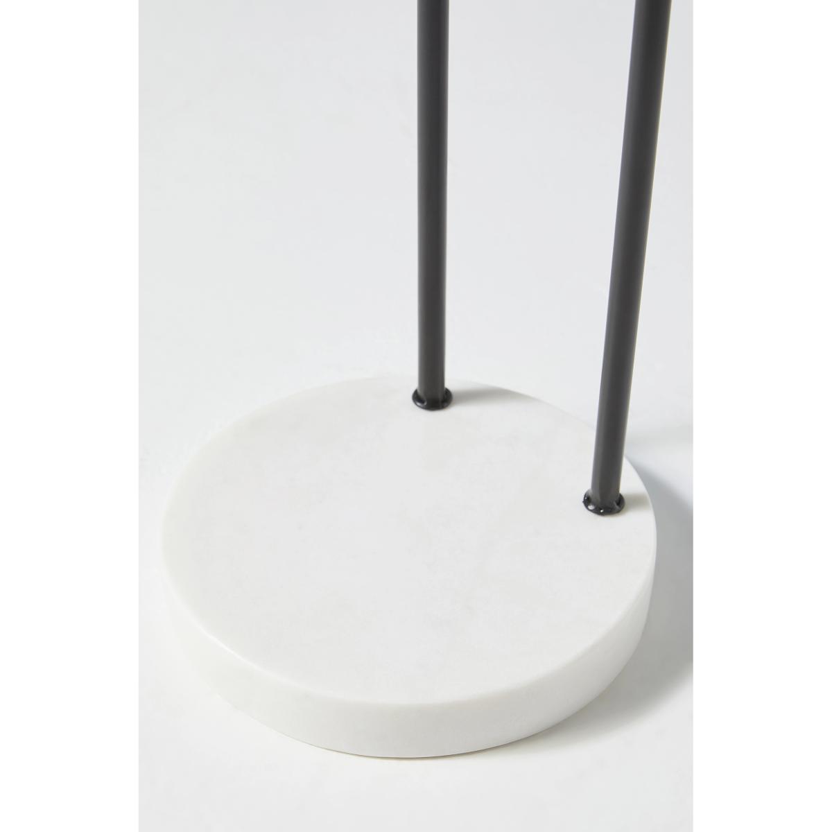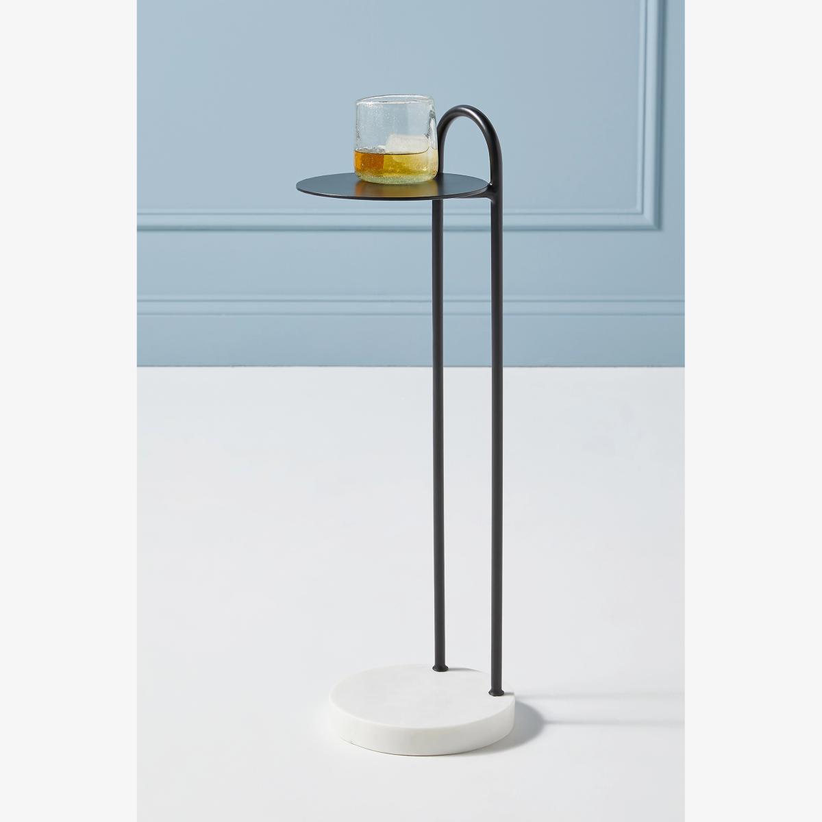 Featuring a modern, steel-crafted design that celebrates curved lines and shapes fitted with a round slab of smooth marble at the base, the Briony end table is a sophisticated perch for mixed drinks or cocktails - and, of course, your morning cuppa, too. * Steel end table with a black powder-coated finish and a marble base * Slight variation in natural stone may occur * This piece is intended for indoor use * No assembly required * Imported