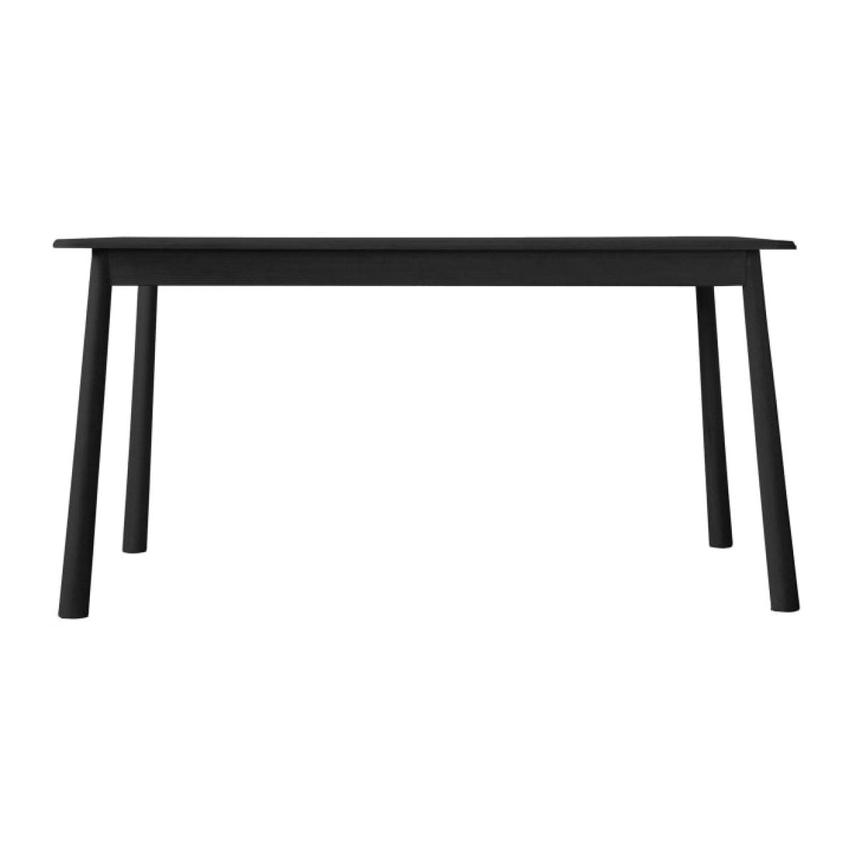 The Wycombe range made from a combination of the finest solid oak and veneers creating the contemporary aesthetic colour palette that is the essence of Nordic style. Material: Oak. Colour/Finish: Black. Table Shape: Rectangle.