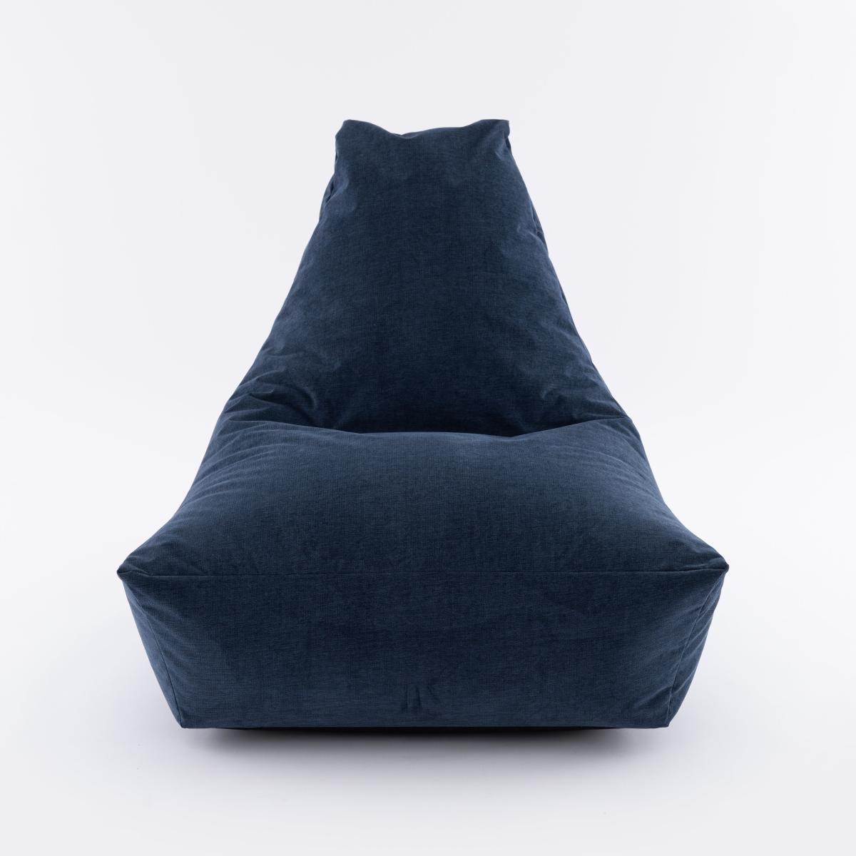 Offering a slouched back which moulds to your shape, this large bean chair offers a removable synthetic cover in soft navy.