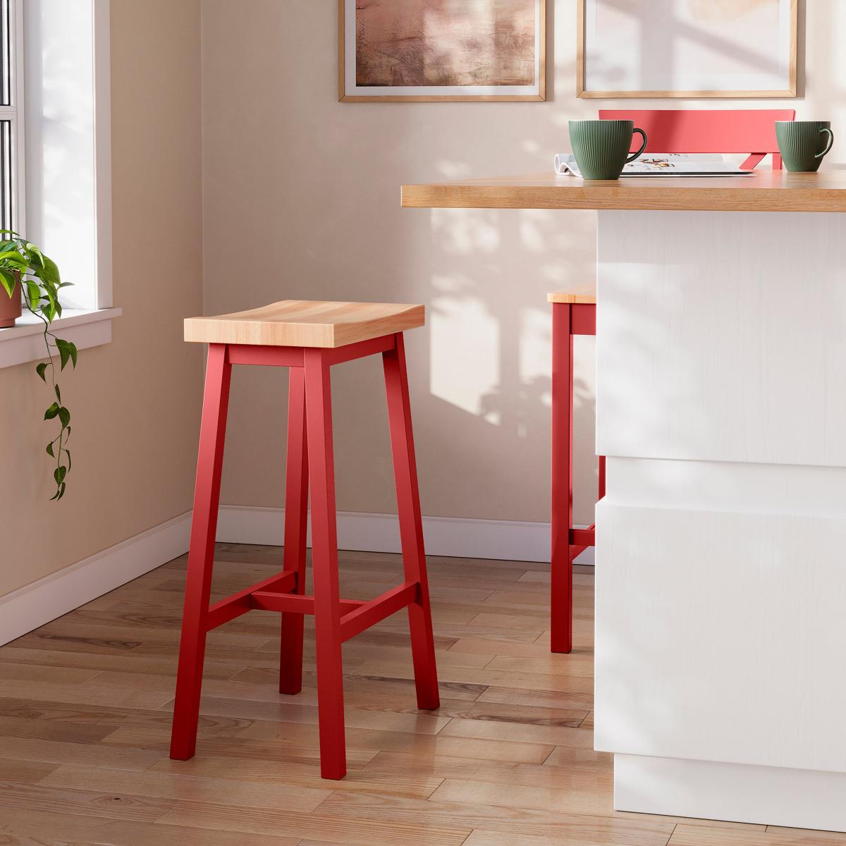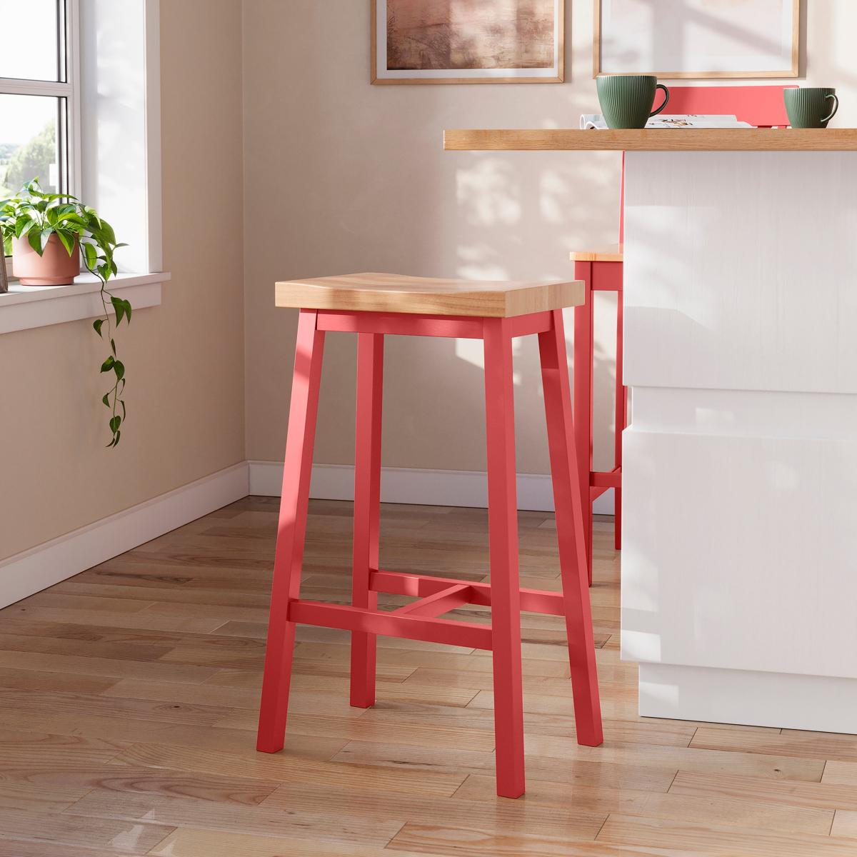 This stool is a great choice for contemporary or eclectic kitchens, thanks to its cheerful baked apple colour combined with a natural wooden top. I love how it adds a pop of colour without dominating the space, making it versatile for many interior styles. It works especially well in open-plan kitchens or breakfast bars, where a touch of colour can really lift the room. For styling tips, pair it with neutral countertops and wooden accents to create a warm, inviting look. Additionally, stacking a few for extra height or pairing with matching bar stools can help create a cohesive seating area that’s practical yet stylish.