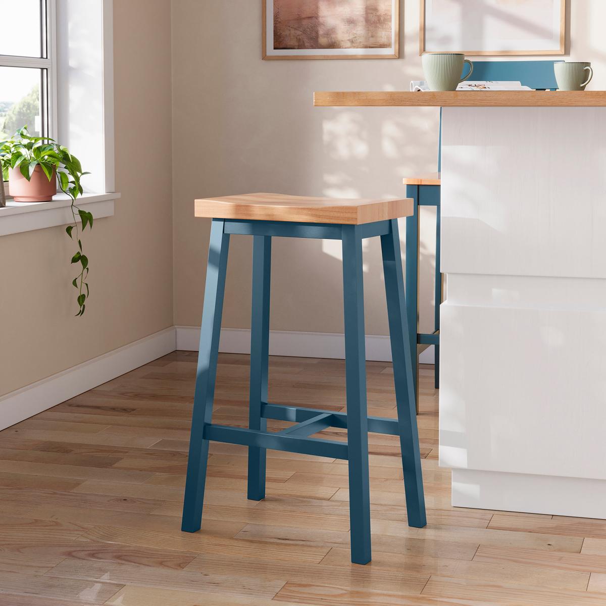 I love the Folkstone Blue counter height stool for its versatile colour and clean, simple design that works well in various interiors. Its bright blue legs add a contemporary pop of colour, making it ideal for modern kitchens, breakfast bars, or even eclectic spaces. This stool pairs beautifully with both neutral tones and more vibrant colour schemes, offering flexibility in styling. Practical tips include using it to add visual interest in a minimal space, layering with textured cushions for extra comfort, or mixing with natural wood accents for a cosy, inviting look. It’s a functional yet stylish choice that balances colour with practicality, perfect for a relaxed, modern kitchen setting.