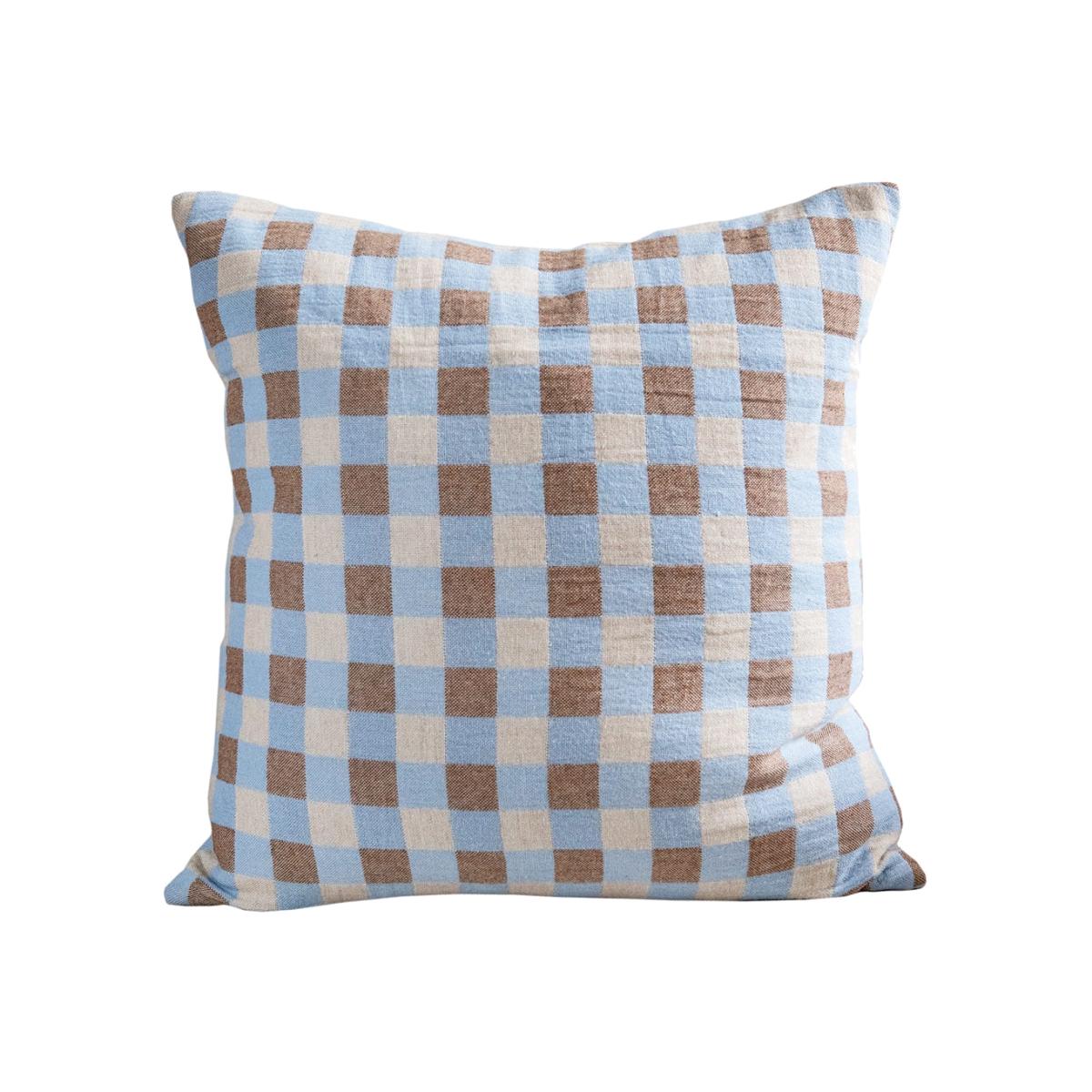 Brita Sweden Poppy Merino Check Cushion Blue 50 x 50cm