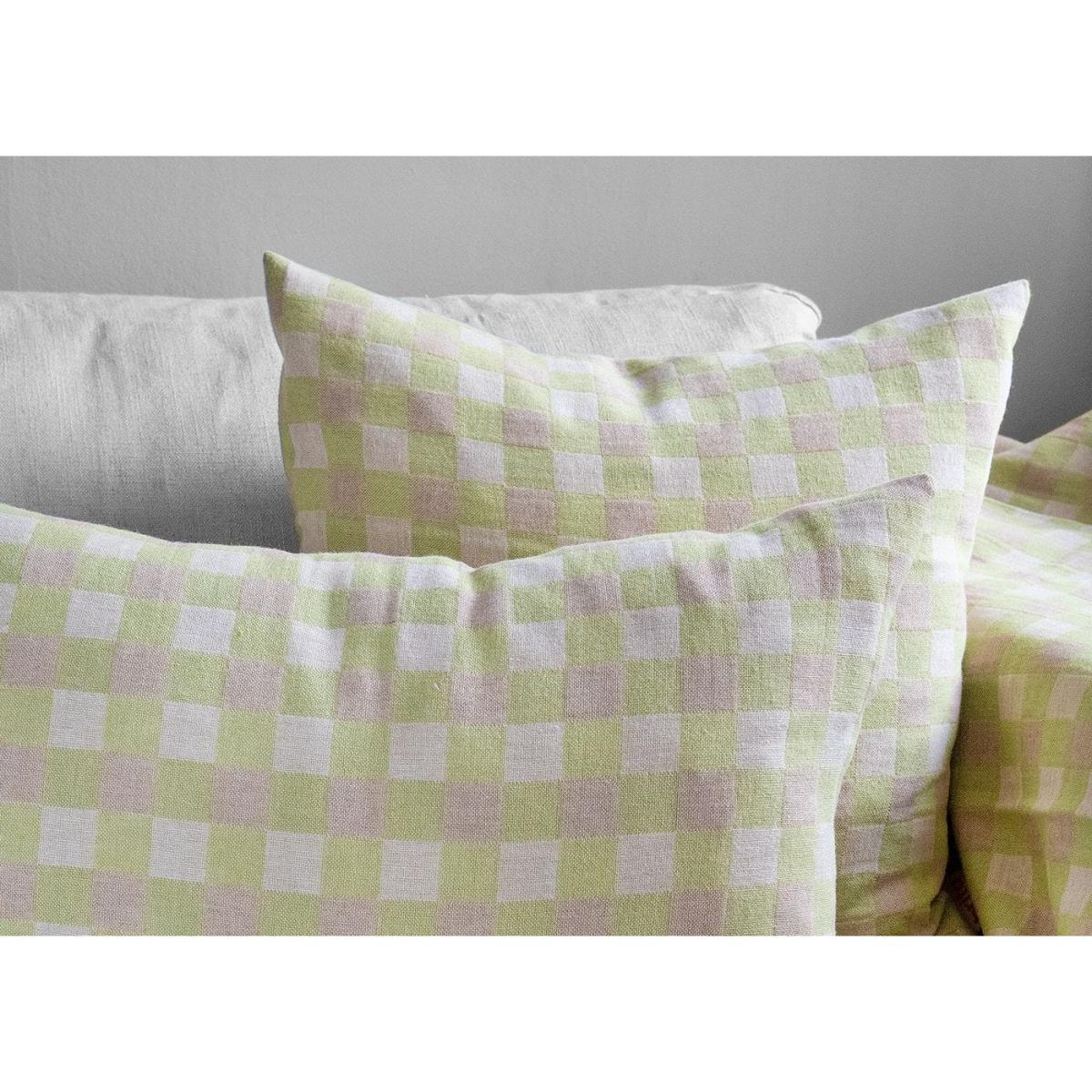 Brita Sweden Poppy Merino Check Cushion Green 50 x 50cm