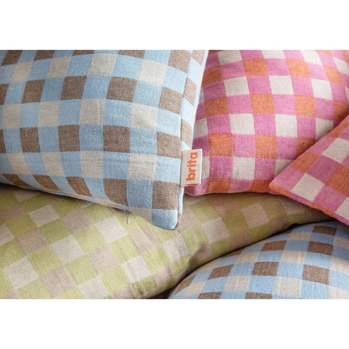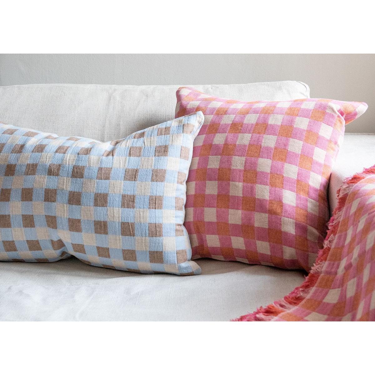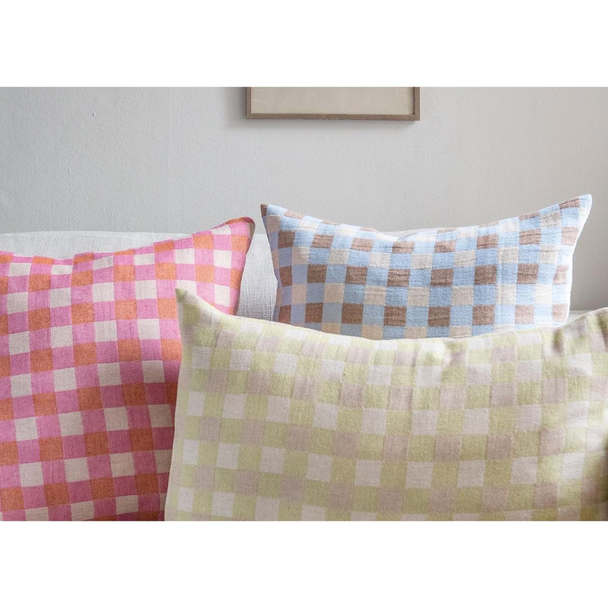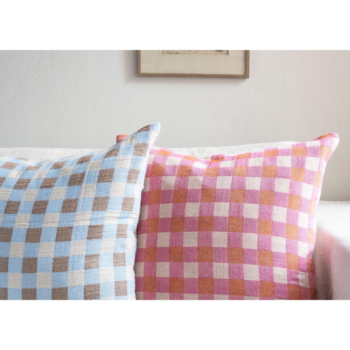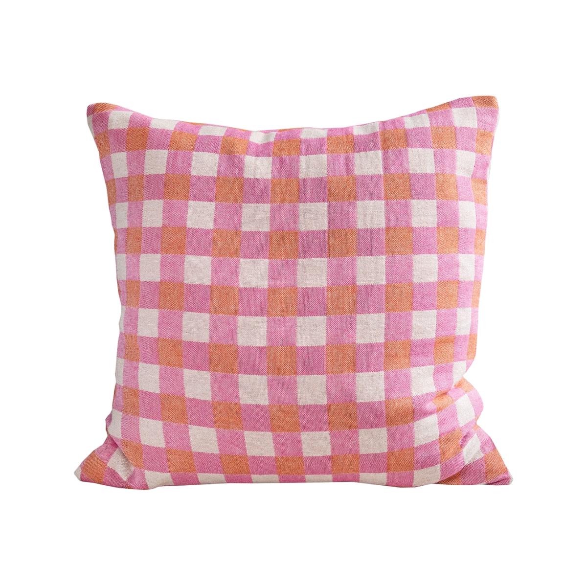 Brita Sweden Poppy Merino Check Cushion Pink 50 x 50cm