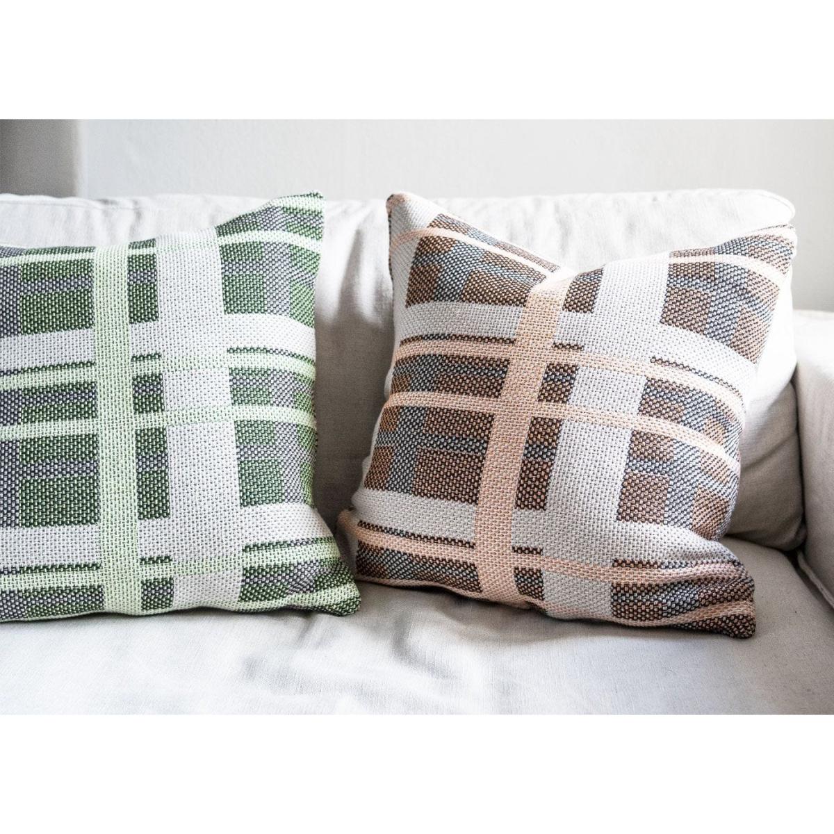 I love the Brita Sweden cushion for its fresh, contemporary check pattern and eco-conscious recycled fabric, making it easy to incorporate into a variety of interiors. It works particularly well in modern, Scandinavian, or minimalist settings where its clean lines and subtle green tones can add a touch of colour without overwhelming the space. Style it alongside neutral linens or velvet textures to create a layered, inviting look on sofas or armchairs. Practical tips include pairing it with other cushions in complementary tones or mixing patterns for an on-trend eclectic vibe. Its size makes it versatile for both functional and decorative use, and its sustainable fabric is a nice bonus for eco-aware styling.